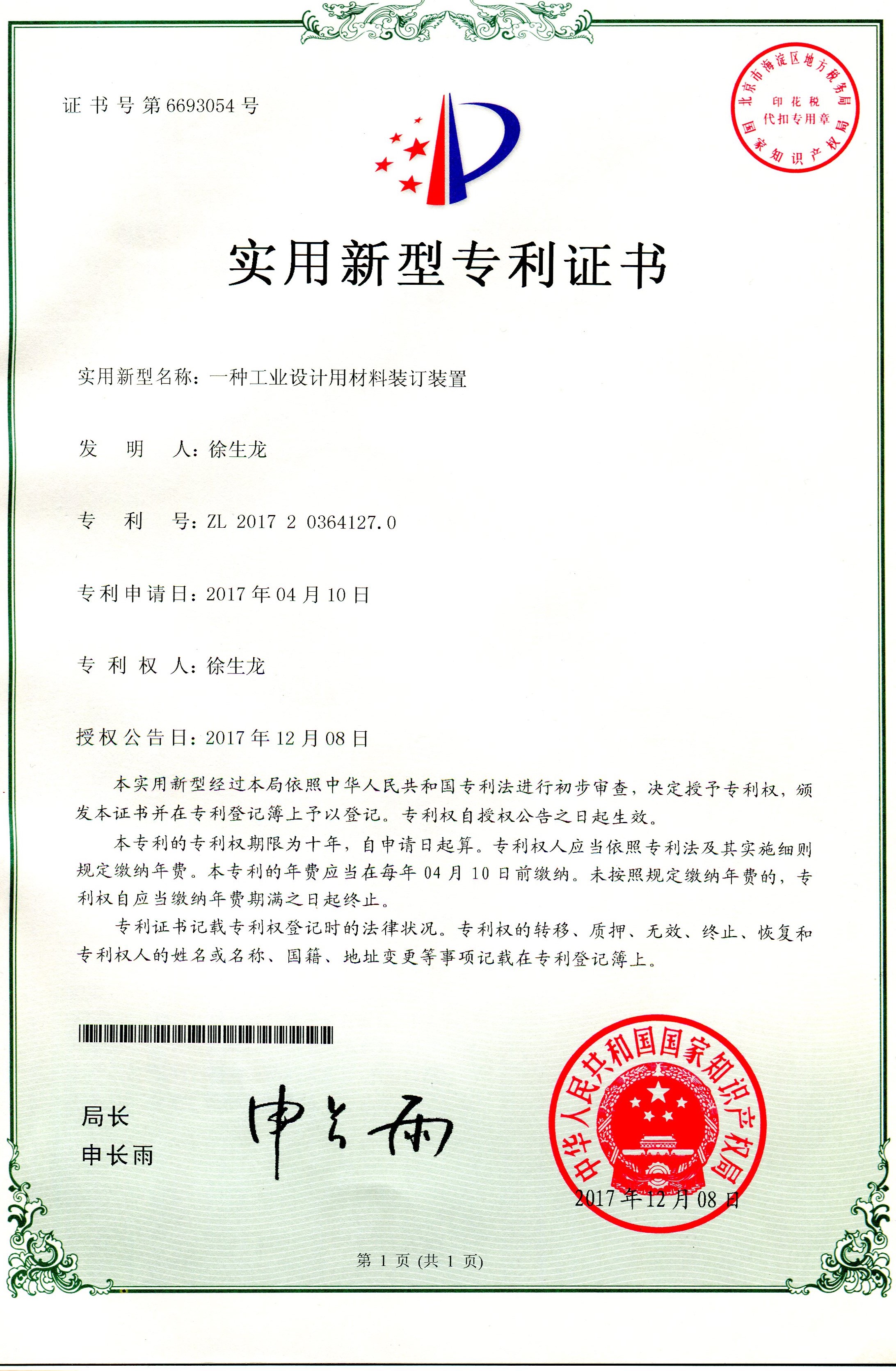 科研成果---實用新型專利:一種工業(yè)設計用材料裝訂裝置