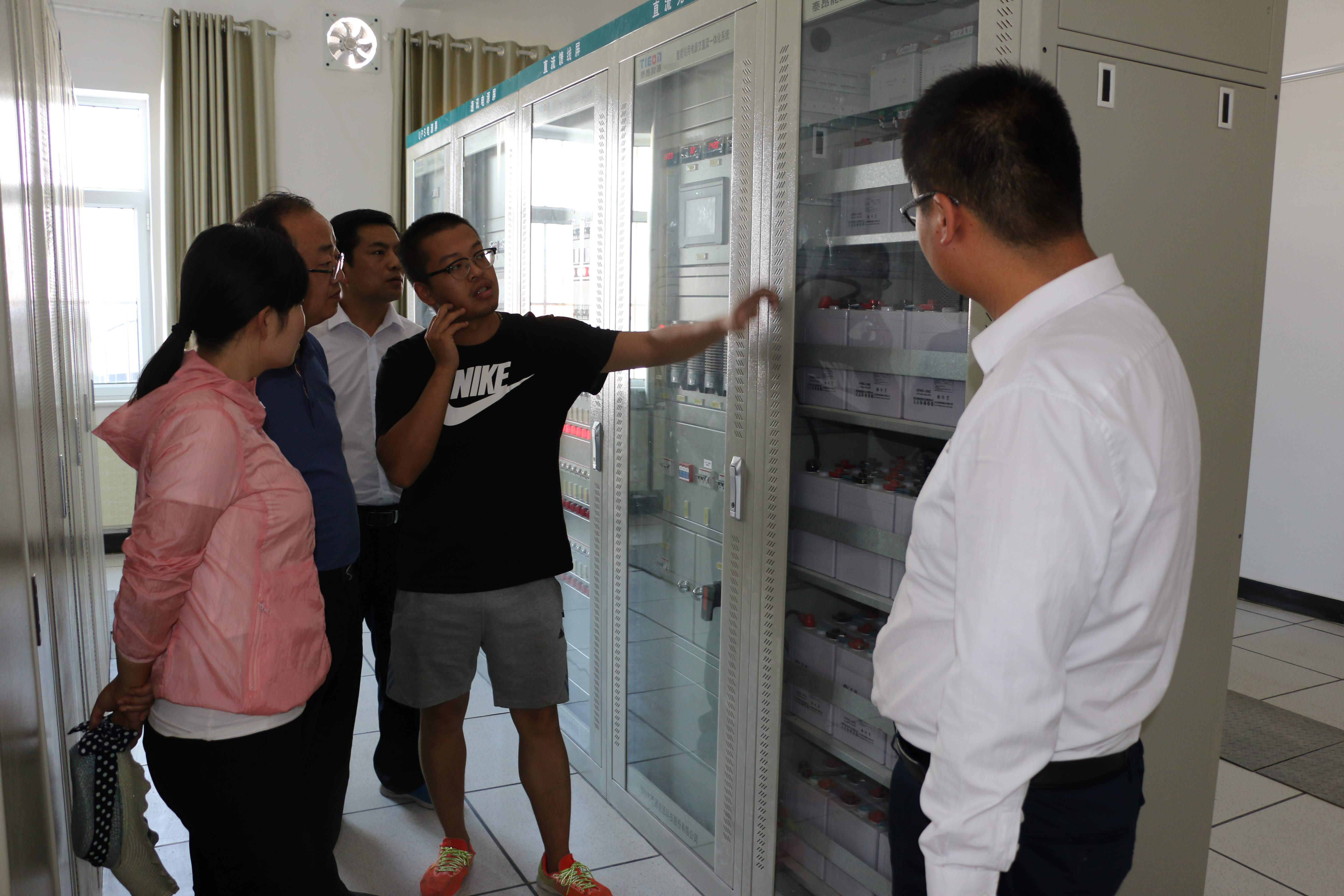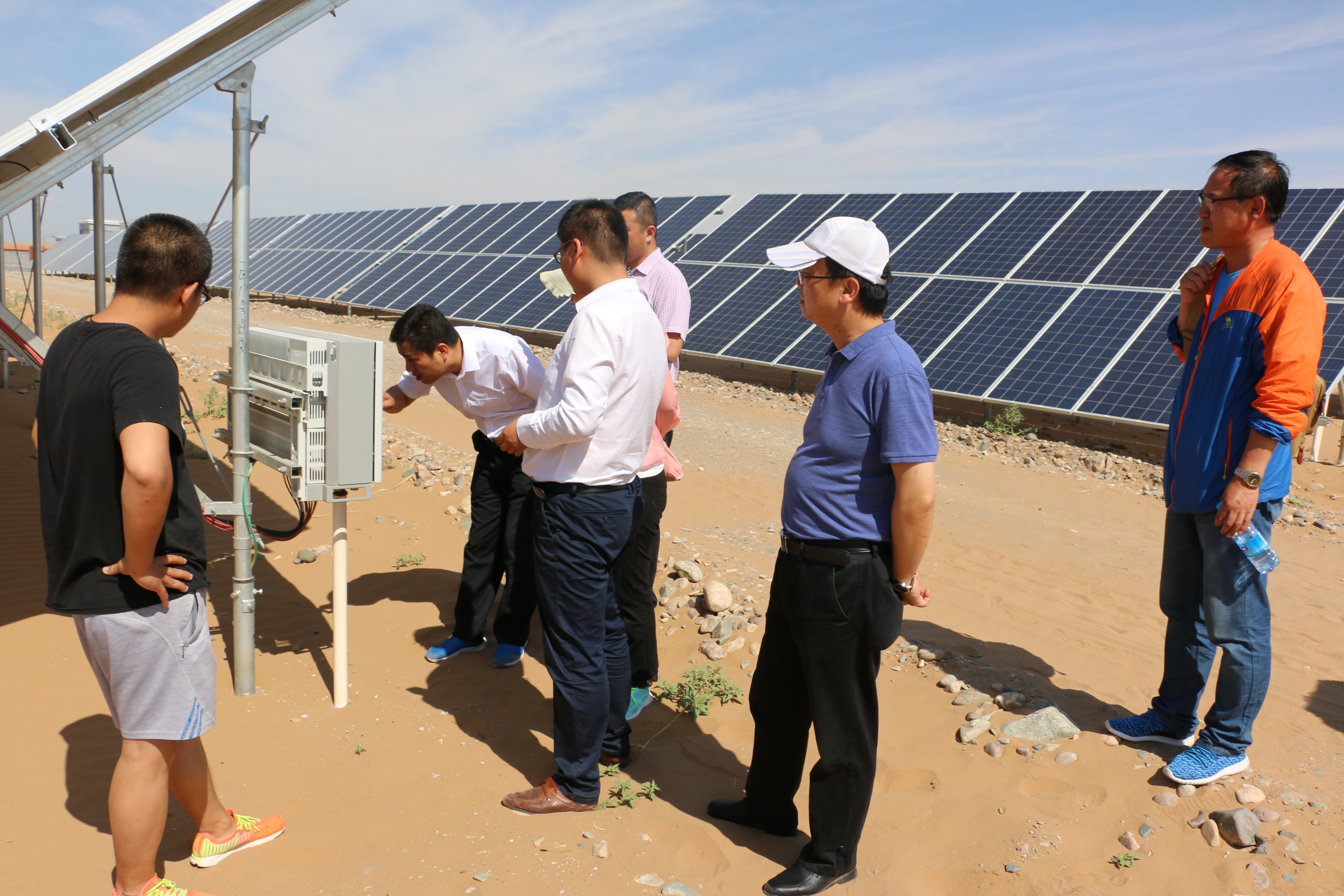 ? ? ?全體教師在電站技術(shù)人員帶領(lǐng)下,依次深入值班調(diào)度室、控制柜室、SVG室(無(wú)功功率補(bǔ)償)、110升壓變電站、開(kāi)關(guān)柜室以及光伏陣列進(jìn)行觀摩學(xué)習(xí),全體教師在調(diào)度室查看監(jiān)控系統(tǒng),查看分析設(shè)備運(yùn)行情況等,通過(guò)現(xiàn)場(chǎng)培訓(xùn)學(xué)習(xí),使老師們近距離熟悉了光伏支架,組件陣列、逆變器、控制器、匯流箱、配電柜等設(shè)備的安裝施工,實(shí)踐學(xué)習(xí)了光伏系統(tǒng)集成設(shè)計(jì)以及并網(wǎng)技術(shù)等,特別是對(duì)光伏電站運(yùn)行安全操作規(guī)程進(jìn)行了系統(tǒng)掌握。