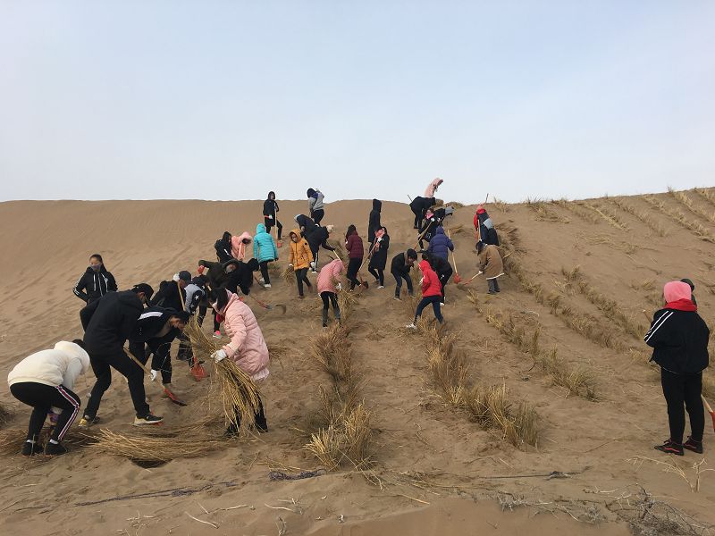 12月15日,為了響應(yīng)市委、團(tuán)委關(guān)于“壓沙造林”的號(hào)召,護(hù)理系組織全體教師及學(xué)生共600余人,來(lái)到長(zhǎng)城鄉(xiāng)附近沙漠地區(qū),開展了義務(wù)壓沙活動(dòng)。