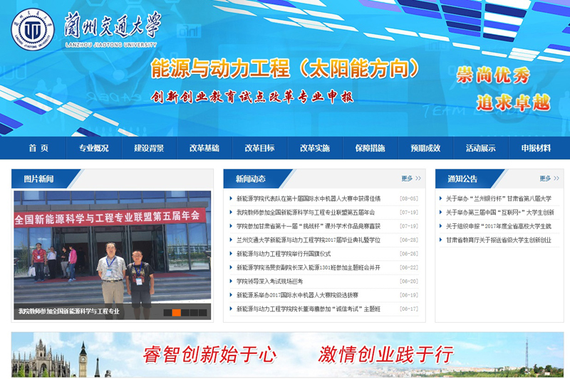 2017年度學(xué)院以平臺(tái)建設(shè)為抓手,積極開展專業(yè)建設(shè),取得重大進(jìn)展,以“深化內(nèi)涵發(fā)展、服務(wù)地方經(jīng)濟(jì)”為目標(biāo),積極開展校企合作,取得明顯實(shí)效。其中學(xué)院申報(bào)的能源與動(dòng)力工程專業(yè)獲批甘肅省創(chuàng)新創(chuàng)業(yè)試點(diǎn)改革專業(yè);與天合光能有限公司達(dá)成協(xié)議由其出資的“思源陽光”基金會(huì)每年提供5萬元的創(chuàng)新創(chuàng)業(yè)獎(jiǎng)學(xué)金;與北京海瑞克有限公司達(dá)成協(xié)議為新能源科學(xué)與工程專業(yè)的優(yōu)秀學(xué)生提供獎(jiǎng)學(xué)金;與北京群菱能源科技有限公司達(dá)成協(xié)議冠名贊助學(xué)院新能源開發(fā)與利用知識(shí)競賽;與蘭州海紅技術(shù)股份有限公司、甘肅建投武威新能源有限公司、中節(jié)能涼州發(fā)電公司等企業(yè)簽訂協(xié)議成立校外教學(xué)實(shí)習(xí)基地。