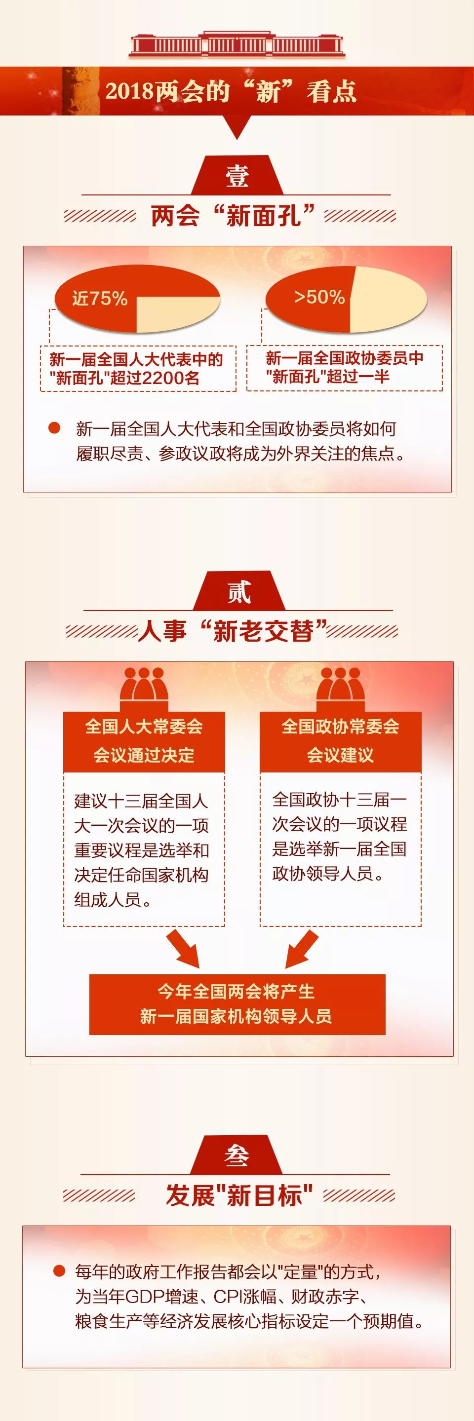 全國兩會(huì)年年開,但你知道這兩個(gè)“會(huì)”有何不同嗎?今年兩會(huì),除了新一屆全國人大代表和全國政協(xié)委員首次亮相之外,又有哪些值得關(guān)注的看點(diǎn)?一起看下面這張圖,提前了解2018年全國兩會(huì)。