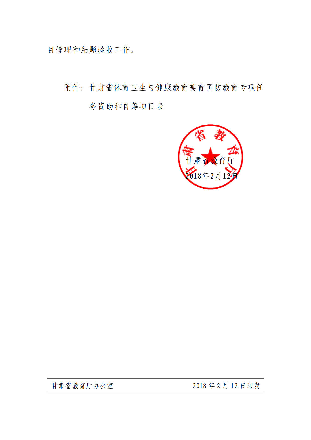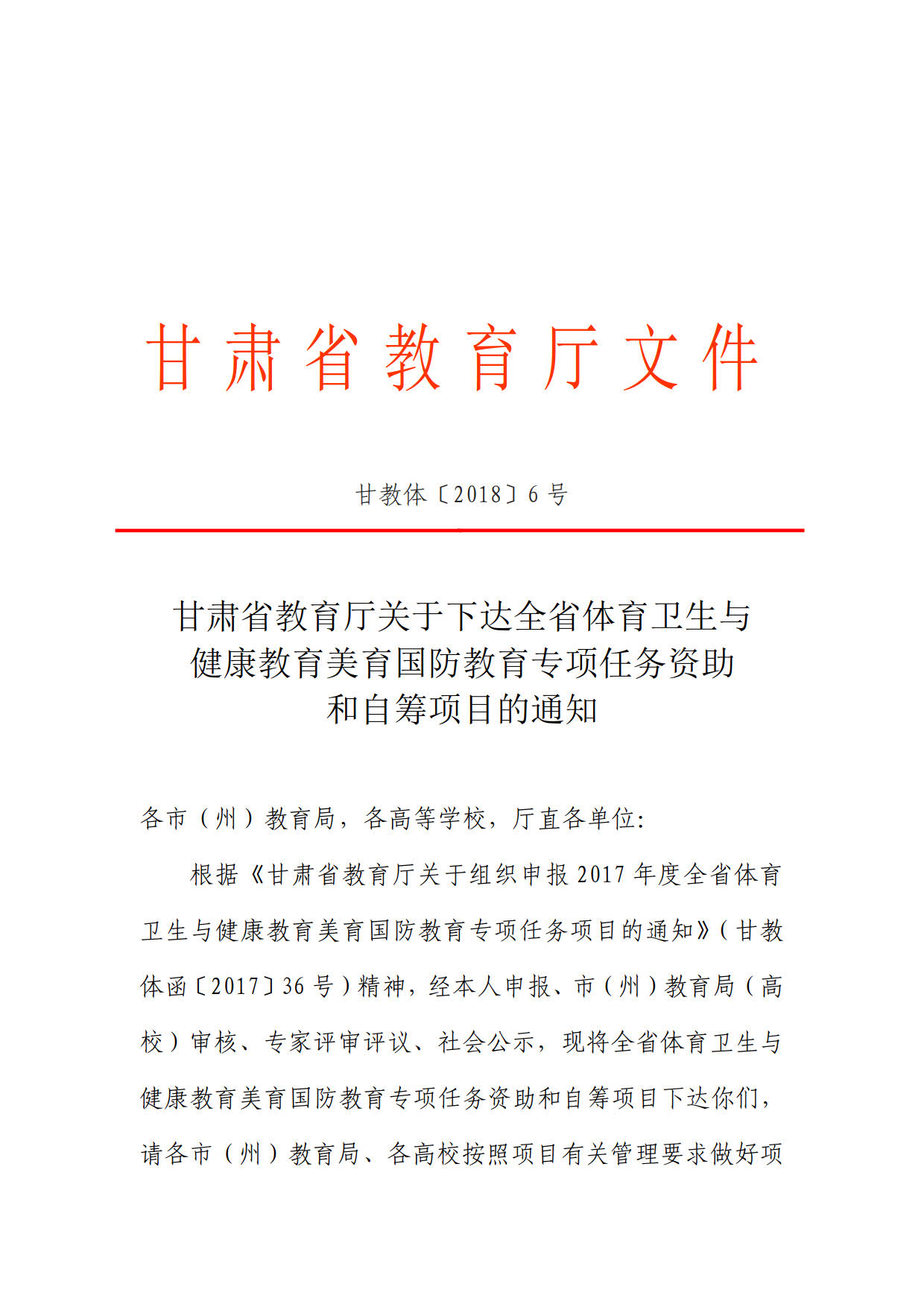 甘肅省教育廳關(guān)于下達(dá)全省體育衛(wèi)生與健康教育美育國防教育專項(xiàng)任務(wù)資助和自籌項(xiàng)目的通知-正文