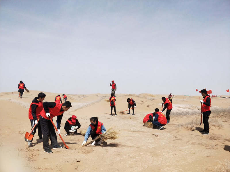 啟動儀式結束后,學院志愿者和來自社會各界的400多名志愿者在技術人員的指導下,嚴格按照栽植梭梭“挖深坑、樹栽中、三埋兩踩一提根”的技術操作要求,通力協(xié)作,密切配合,認真做好挖坑、放梭梭、施肥、埋沙等各個環(huán)節(jié)的操作,有效保障了梭梭的成活率。經(jīng)過不懈努力,共栽植梭梭5萬余株,為拯救民勤綠洲貢獻了自己的青春力量。