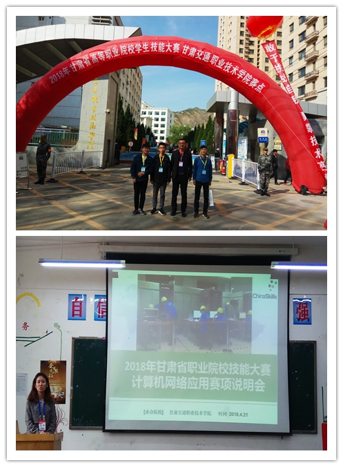 4月21日—22日,2018年甘肅省高等職業(yè)院校技能大賽“計(jì)算機(jī)網(wǎng)絡(luò)應(yīng)用”賽項(xiàng)在甘肅交通職業(yè)技術(shù)學(xué)院賽點(diǎn)順利舉行。“計(jì)算機(jī)網(wǎng)絡(luò)應(yīng)用”賽項(xiàng)的參賽院校為12所,共有參賽隊(duì)21個(gè)。我系參賽隊(duì)由2017級(jí)計(jì)算機(jī)網(wǎng)絡(luò)技術(shù)大專(zhuān)班學(xué)生畢浩、張向東、趙明明三位同學(xué)組成,指導(dǎo)老師史子新、唐宗舜。