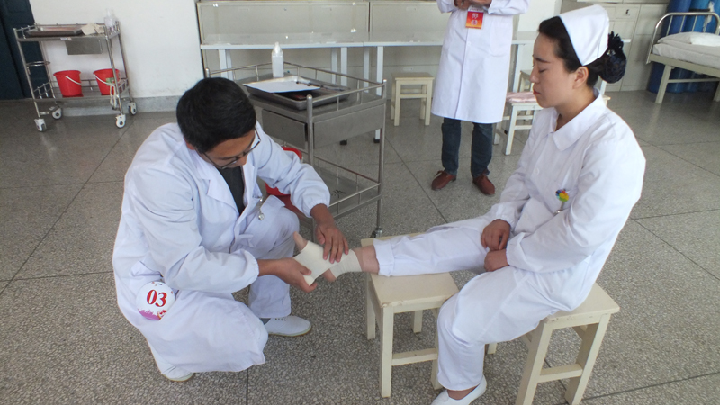 本次比賽分為初賽和復(fù)賽兩部分,初賽內(nèi)容為專業(yè)理論知識(shí)及病例分析,復(fù)賽內(nèi)容為心肺復(fù)蘇、右踝關(guān)節(jié)扭傷包扎、密閉式靜脈輸液等3項(xiàng)護(hù)理技能操作,參賽的同學(xué)們?cè)诒荣愔姓宫F(xiàn)出熟練的操作技能,檢驗(yàn)了同學(xué)們的理論實(shí)踐能力,為實(shí)習(xí)和以后的工作奠定了良好的基礎(chǔ)。此次技能競(jìng)賽對(duì)激發(fā)我系學(xué)生學(xué)習(xí)興趣,加強(qiáng)學(xué)風(fēng)建設(shè),營(yíng)造專業(yè)特色,提高同學(xué)們的臨床實(shí)踐操作能力和培養(yǎng)良好的職業(yè)素養(yǎng)具有重要的意義。