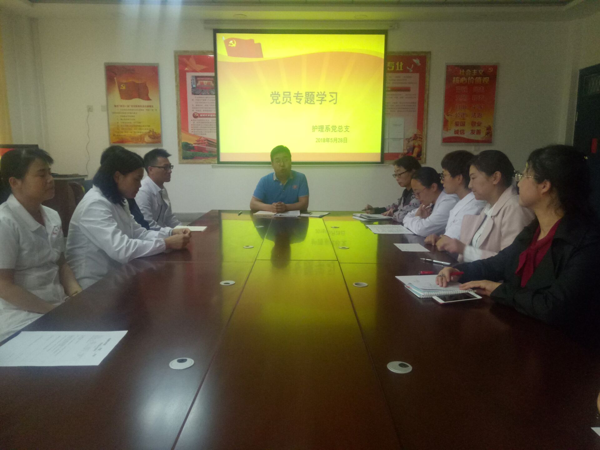 5月25日,護理系黨總支在明遠樓103黨員活動室開展了集中學習,重點學習了甘肅省政府《關于進一步轉變政府工作作風的“十不準”規(guī)定》、省委組織部《關于汲取折達公路考勒隧道案例整治干部不擔當不作為問題的通知》等文件精神,收看了《以折達公路問題為案例》的作風建設警示教育片。會議由護理系黨總支書記張建輝主持,支部全體黨員及入黨積極份子參與本次學習。