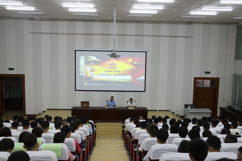 6月10日晚上,學(xué)院征兵工作站和涼州區(qū)西關(guān)街武裝部聯(lián)合在學(xué)院尚德樓正德廳舉行2018年大學(xué)生應(yīng)征入伍動(dòng)員大會(huì),學(xué)院260多名大學(xué)生和各系輔導(dǎo)員參加大會(huì)。涼州區(qū)西關(guān)街武裝部部長(zhǎng)趙光慶參加大會(huì),會(huì)議由學(xué)院征兵工作站站長(zhǎng)王守云同志主持。