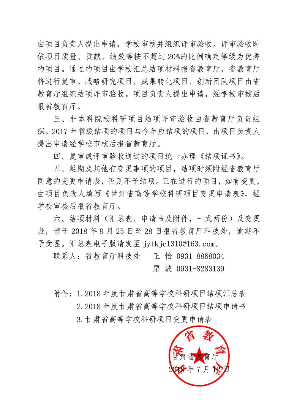 轉(zhuǎn)發(fā)甘肅省教育廳關(guān)于對2018年度甘肅省高等學(xué)??蒲许?xiàng)目進(jìn)行結(jié)項(xiàng)驗(yàn)收的通知