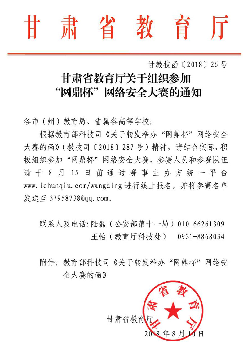 附件:教育部科技司關于轉(zhuǎn)發(fā)《關于舉辦“網(wǎng)鼎杯”網(wǎng)絡安全大賽的函》.pdf