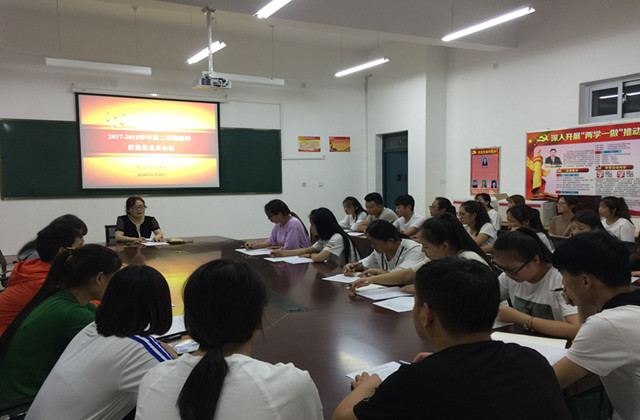 為深入了解教學(xué)過(guò)程中存在的問(wèn)題,進(jìn)一步加強(qiáng)教學(xué)質(zhì)量監(jiān)控與評(píng)價(jià),完善“四位一體”教學(xué)質(zhì)量監(jiān)控體系和“五位一體”教學(xué)質(zhì)量評(píng)價(jià)體系,6月21日晚上,系書記晏素珍同志深入各班開展評(píng)教評(píng)學(xué)活動(dòng),并組織各班教學(xué)質(zhì)量信息員及學(xué)生代表召開了2017-2018學(xué)年第二學(xué)期的教學(xué)質(zhì)量信息員暨學(xué)生代表大會(huì)。