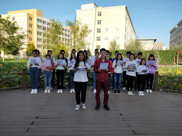 同學們分別在圖書館、荷花池等地方進行詩詞朗誦及詩詞交流。朗誦的詩詞主要有明代張恒的《涼州詞》、唐代李白的《關山月》及唐代王昌齡的《從軍行》等多篇優(yōu)秀作品。