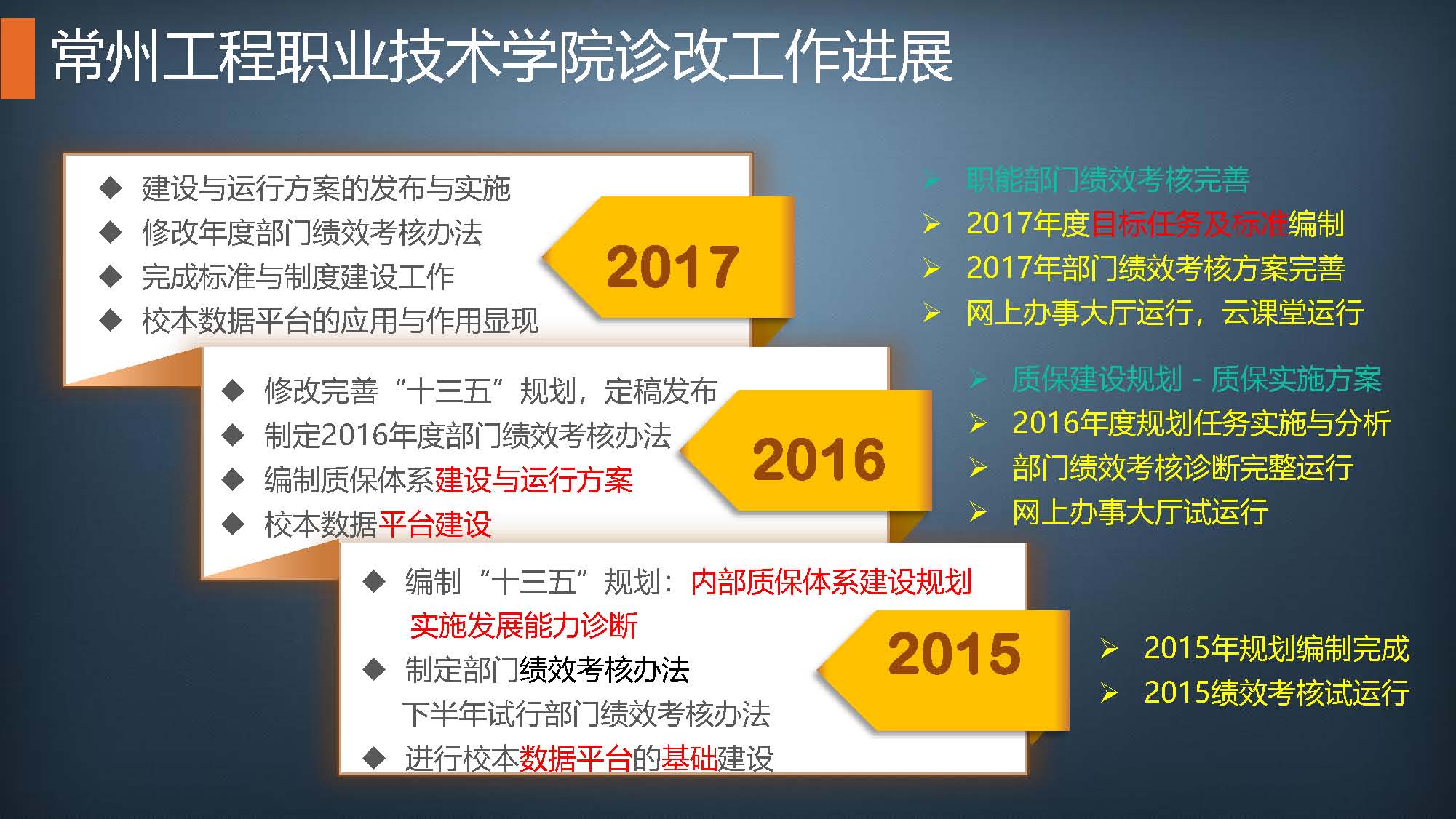 -- 常州工程“診改”工作的進展、方案及思考