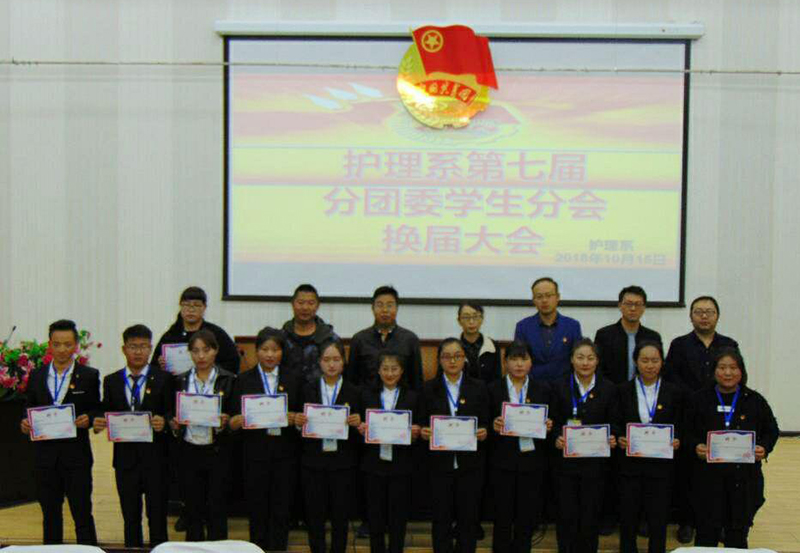 近日護(hù)理系分團(tuán)委學(xué)生分會(huì)第七屆換屆選舉于正德廳順利召開,護(hù)理系黨總支書記張建輝、系主任韓曉萍、系分團(tuán)委書記楊杰、輔導(dǎo)員寇明赟、張前、龐大勇,2017級(jí)、2018級(jí)團(tuán)干部出席了本次大會(huì)。