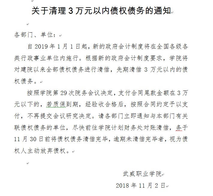 關(guān)于清理3萬(wàn)元以內(nèi)債權(quán)債務(wù)的通知