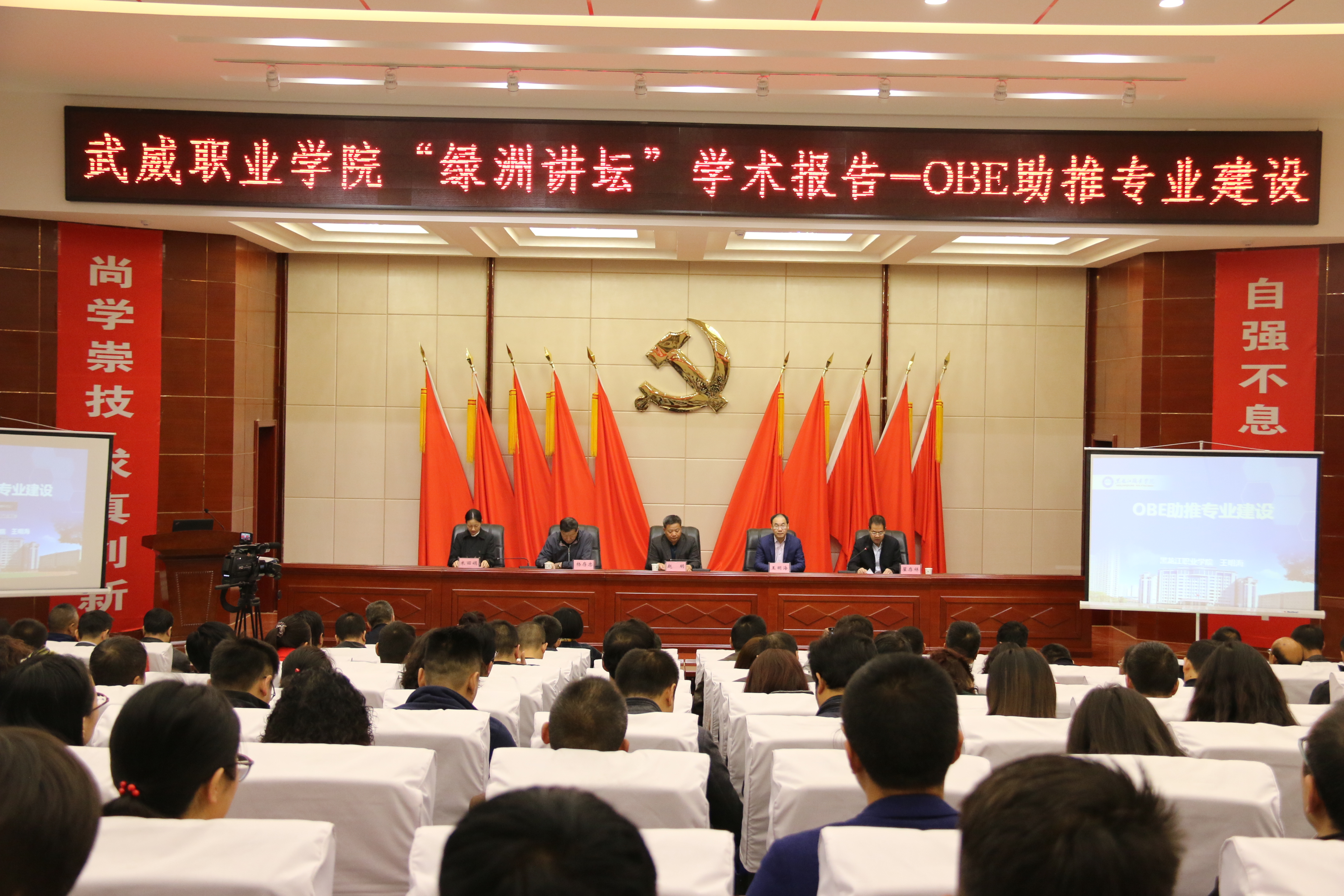 10月29日上午,“綠洲講壇”系列學(xué)術(shù)報(bào)告第二講在武威職業(yè)學(xué)院菁英廳舉行,報(bào)告會由中科低碳新能源技術(shù)學(xué)院承辦,黑龍江職業(yè)學(xué)院、黑龍江省經(jīng)濟(jì)管理干部學(xué)院副院長王明海教授主講,學(xué)院黨委委員、副院長翟存祥主持,中科低碳新能源技術(shù)學(xué)院院長楊存忠教授,中科低碳新能源技術(shù)學(xué)院院長助理米麗娟博士,武威職業(yè)學(xué)院黨委書記、院長趙明教授和學(xué)院中層干部教研室主任、骨干教師代表以及甘肅畜牧工程職業(yè)技術(shù)學(xué)院領(lǐng)導(dǎo)和教學(xué)系主任應(yīng)邀參加了本次活動。
