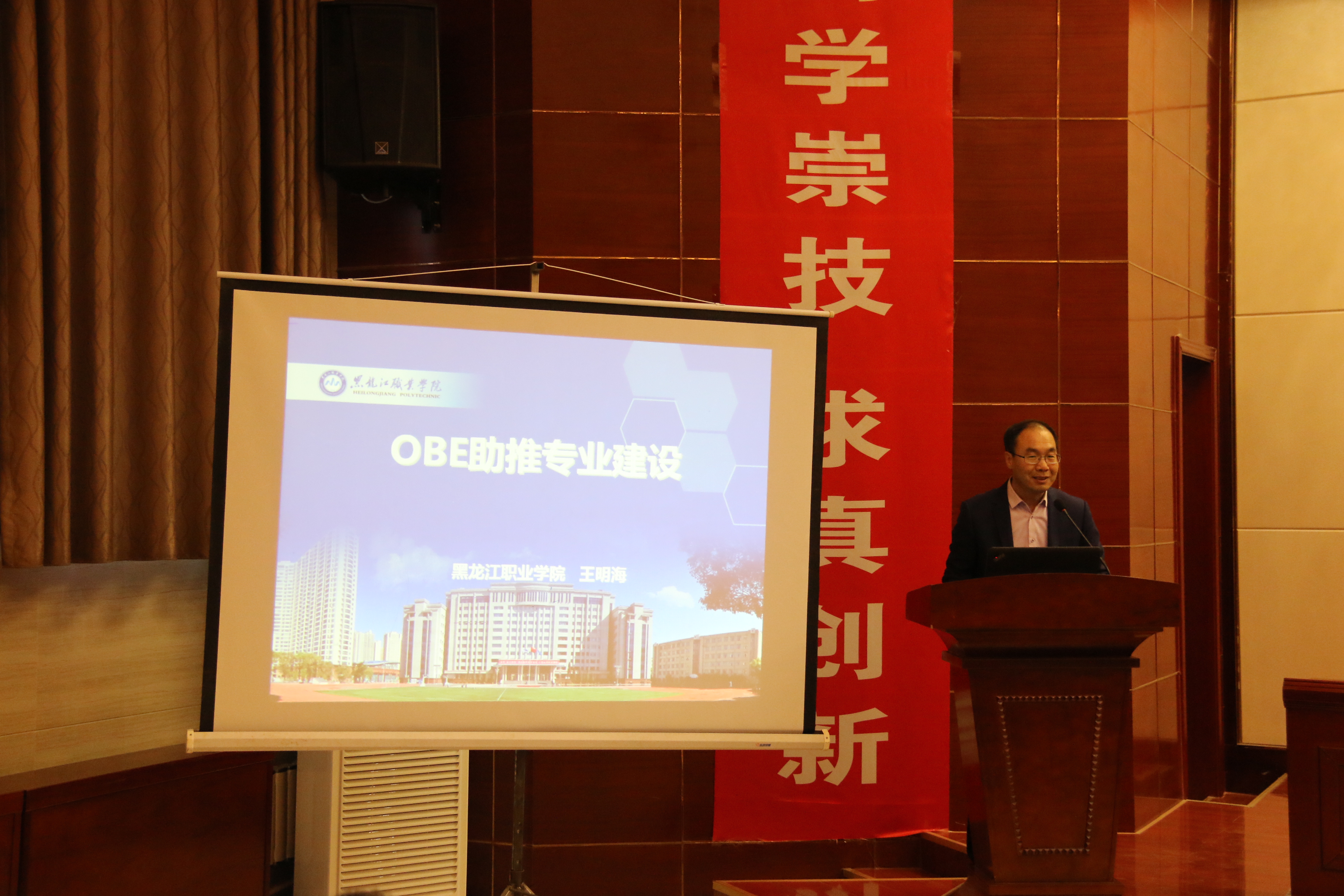 王明海教授以“成果導(dǎo)向教育(OBE)助推專業(yè)建設(shè)”為題作了專題報(bào)告。他結(jié)合自身多年的實(shí)踐經(jīng)驗(yàn)和研究成果向與會者回顧了黑龍江職業(yè)學(xué)院成果導(dǎo)向課程開發(fā)歷程,從定義成果、設(shè)計(jì)課程到教學(xué)授課、評定結(jié)果、決定進(jìn)階五個(gè)方面系統(tǒng)闡述了成果導(dǎo)向課程開發(fā)與實(shí)施路徑,為參會高職院校教學(xué)改革提供了參考方向。