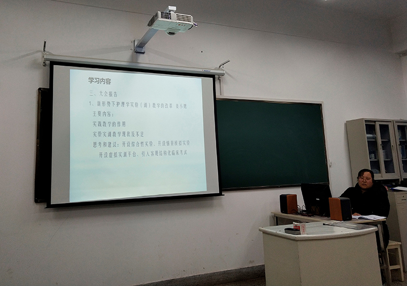 2018年11月20日,護(hù)理系組織全系教師在卓行樓308室聽取外出培訓(xùn)教師匯報會。