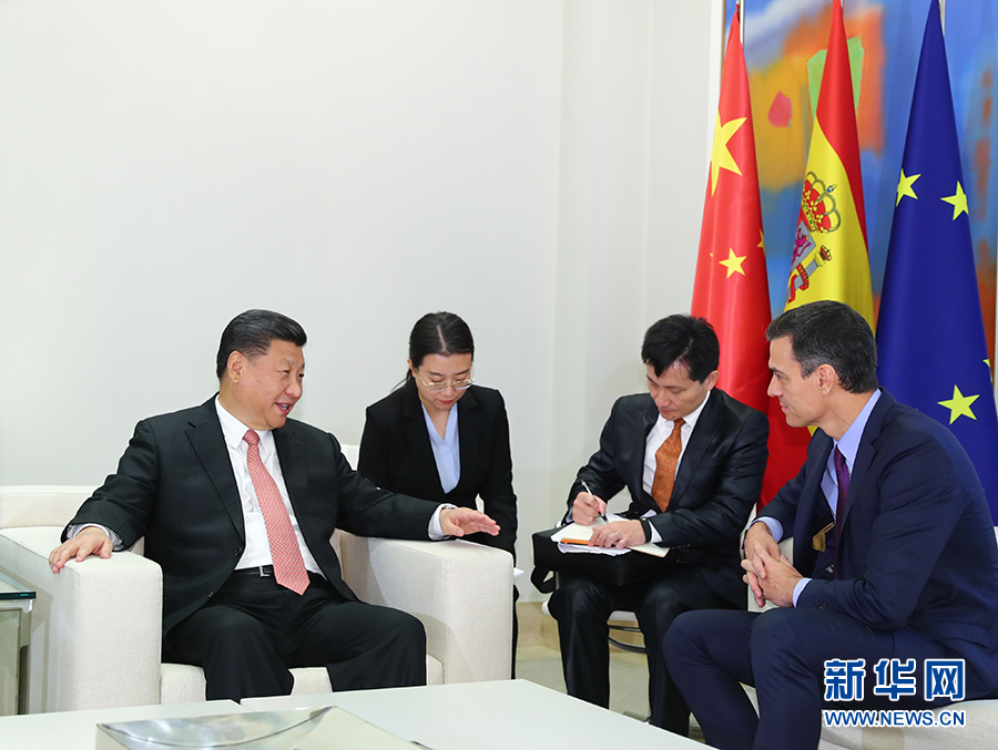習(xí)近平指出,很高興連任中國國家主席后首次訪問歐洲來到西班牙。今年是中西建交45周年。兩國建交以來,雙邊關(guān)系經(jīng)歷國際風(fēng)云考驗,一直健康穩(wěn)定發(fā)展,中西友好歷久彌新。首相先生致力于發(fā)展中西關(guān)系,積極支持共建“一帶一路”,我們對此表示贊賞。中方始終珍視同西班牙的傳統(tǒng)友誼,重視西班牙在國際事務(wù)中的重要影響,愿同西方攜手努力,豐富中西全面戰(zhàn)略伙伴關(guān)系內(nèi)涵,提升各領(lǐng)域合作水平,為不同文明交流互鑒、不同社會制度國家合作共贏樹立典范。