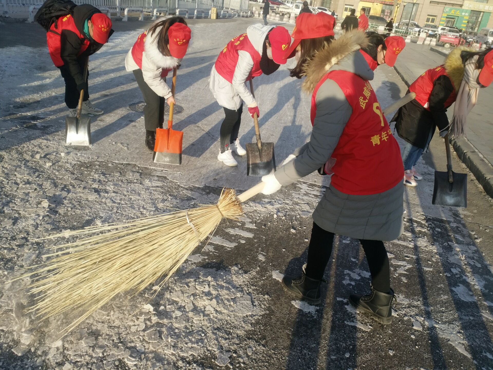 當(dāng)天上午,志愿者們攜著冬日的暖陽將愛撒播在的服務(wù)的每一個角落,忙的不亦樂乎。學(xué)生志愿者一個個身穿紅馬夾穿梭在火車站及汽車站一帶幫助行人提東西、拉皮箱,清掃路面積雪、清除街道長期殘留的垃圾等。志愿者們用自己的雙手拾撿著行人留下的煙頭和瓜子皮,他們不畏嚴(yán)寒,默默地奉獻(xiàn)著熱情和溫暖。經(jīng)過的人們紛紛向志愿者們投向了贊許與致謝的目光。