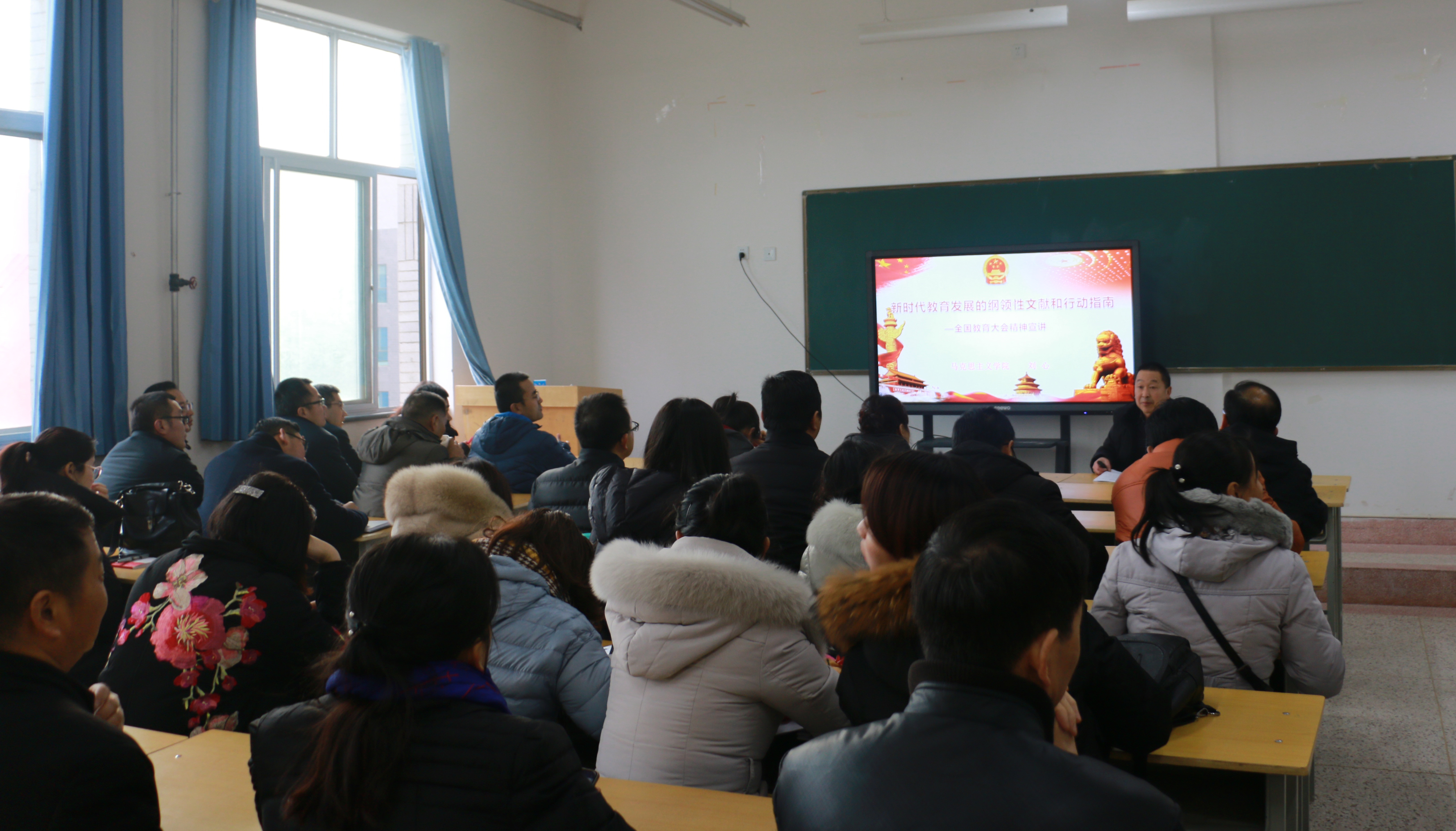 12月21日下午,能源工程系與經(jīng)濟管理系、電子信息工程系在行樹樓504教室聯(lián)合開展“全國教育大會精神”宣講活動,宣講會由人文藝術教育系思政教研室主任劉心主講,能源工程系與經(jīng)濟管理系、電子信息工程系60多名教師參加了本次活動。