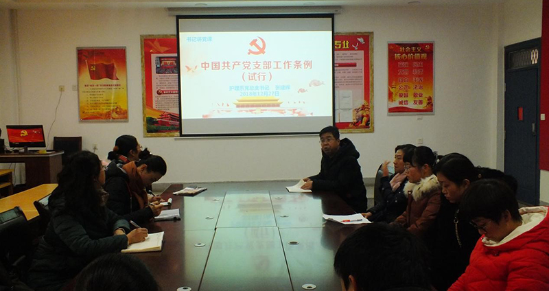 為進一步加強黨支部標準化建設, 12月27日,護理系黨總支在明遠樓103黨員活動室開展學習活動,護理系黨總支書記張建輝以《中國共產黨支部工作條例(試行)》為題,為參會黨員們進行專題黨課輔導,促進全體黨員對黨建工作的認識學習。