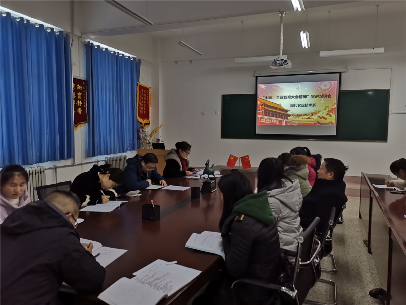 12月24日,現(xiàn)代農(nóng)業(yè)技術(shù)系在行書樓教學(xué)區(qū)309辦公室召開宣講“全國、全省教育大會精神”宣講對談會由系黨總支書記晏素珍主持,全系教師參加并發(fā)言交流教育大會精神。
