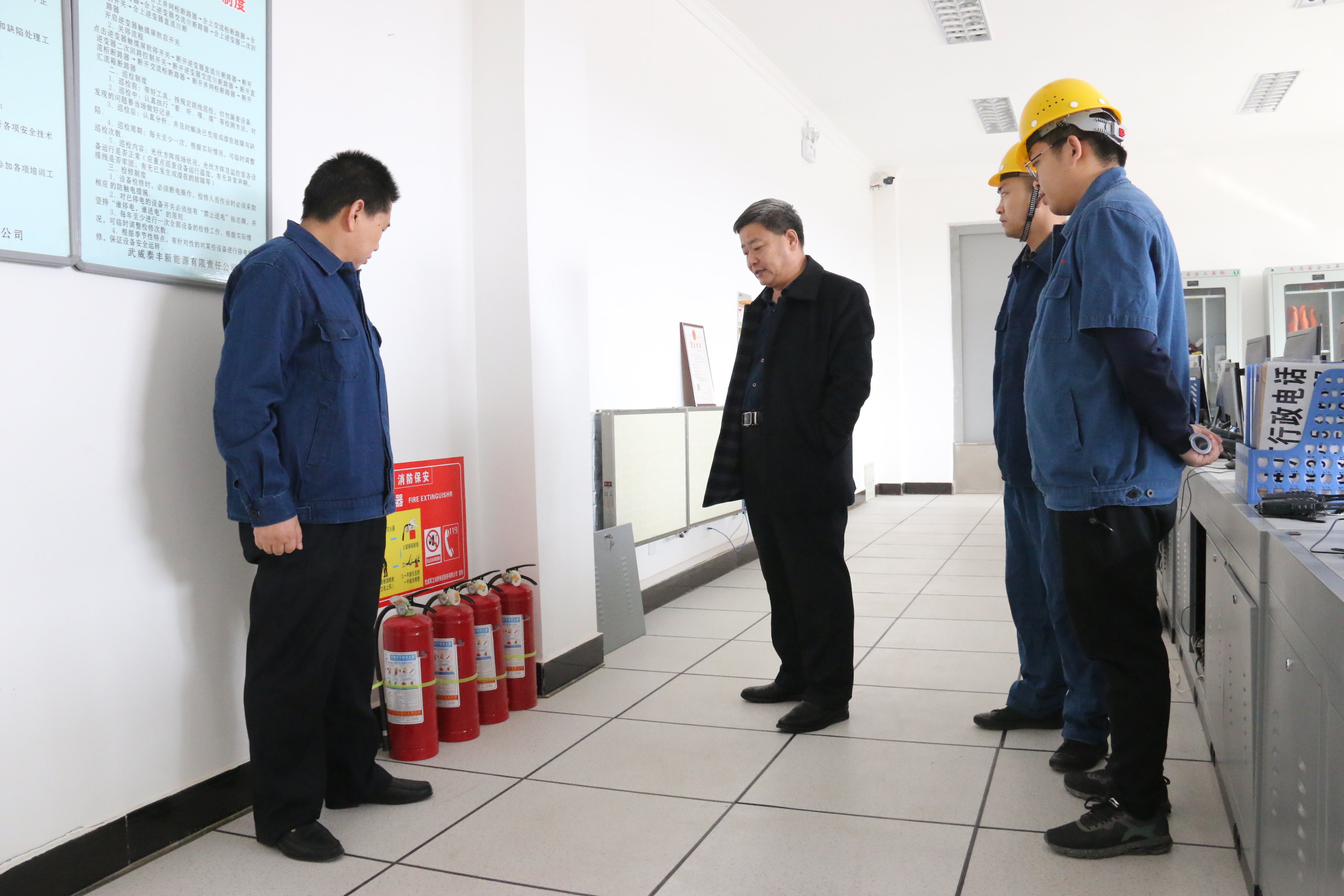 2019年2月25日,學院黨委書記、院長趙明、副院長翟存祥一行到校辦企業(yè)武威泰豐新能源有限責任公司古浪20兆瓦光伏扶貧電站檢查指導工作。趙明書記一行在公司負責人的陪同下深入電站中控室、光伏區(qū)、生活區(qū)等場地詳細了解了安全管理、電站運營和工作人員生活保障等情況,隨后進行了座談交流。
