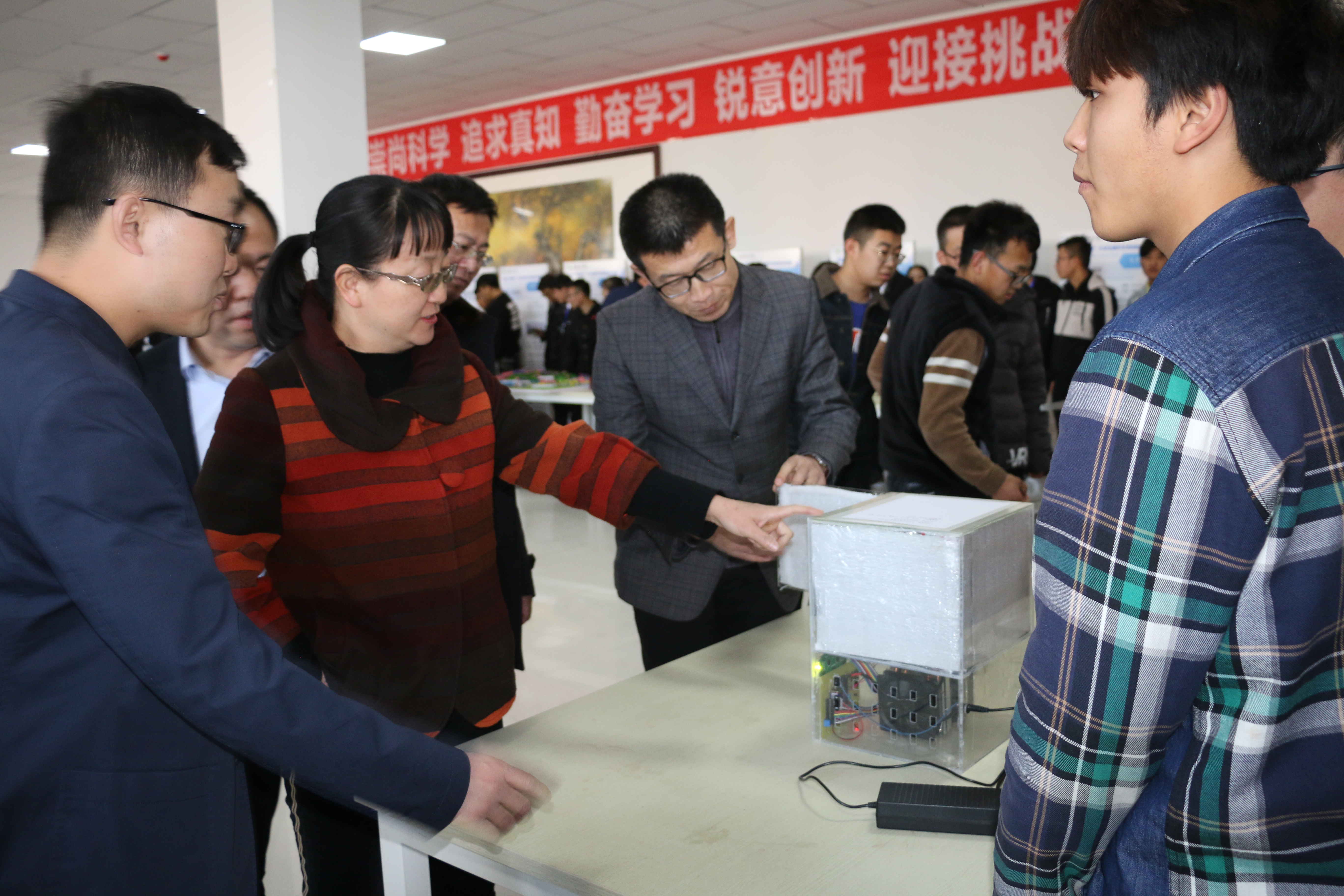 大賽自2018年6月啟動以來,得到了學(xué)院廣大師生的熱情參與,共收到了來自8個系的37件作品,經(jīng)過組委會預(yù)審,最終有36件作品入圍終審決賽,作品涵蓋機械控制、信息技術(shù)、生命科學(xué)、能源化工等多個學(xué)科。參照全國挑戰(zhàn)杯競賽章程,組委會聘請院內(nèi)17名相關(guān)學(xué)科,具有副高級及以上職稱專家組成了評審委員會。評審委員會對三類作品通過資料初評和現(xiàn)場答辯兩個環(huán)節(jié)進行了終審,最終評選出一等獎4項、二等獎8項、三等獎16項、優(yōu)秀獎8項。根據(jù)團體總分排序,現(xiàn)代農(nóng)業(yè)技術(shù)系榮獲本屆比賽“挑戰(zhàn)杯”,電子信息工程系和建筑工程系榮獲本屆比賽“優(yōu)勝杯”。終審結(jié)束后,評審委員會討論推薦28件作品參加甘肅省第十二屆“挑戰(zhàn)杯”大學(xué)生課外學(xué)術(shù)作品競賽,并對各作品提出了修改意見。