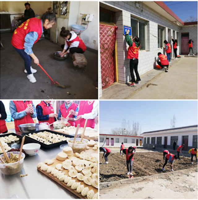 31日深入敬老院開展送溫暖志愿服務(wù)。為留守老年人、五保戶以及空巢老人、孤寡老人送去關(guān)愛,志愿者們首先將帶去的毛巾、香皂、牙刷、牙膏等生活用品送到老人手里。隨后志愿者們開展義務(wù)勞動(dòng),幫助老人們打掃宿舍衛(wèi)生,清掃院內(nèi)垃圾,并幫老人耕作菜園、松土、撿深埋園地的各類垃圾塑料。之后將事先準(zhǔn)備好的餃子皮、餃子餡拿出來給他們包餃子吃,期間志愿者和老人們親切交談,詢問他們的生活情況,了解他們的精神狀況,給予他們最美好的祝福。志愿者以微薄之力幫助他們解決了一些實(shí)際困難,更從精神上給予關(guān)愛,讓他們內(nèi)心感受溫暖,安享晚年之樂。