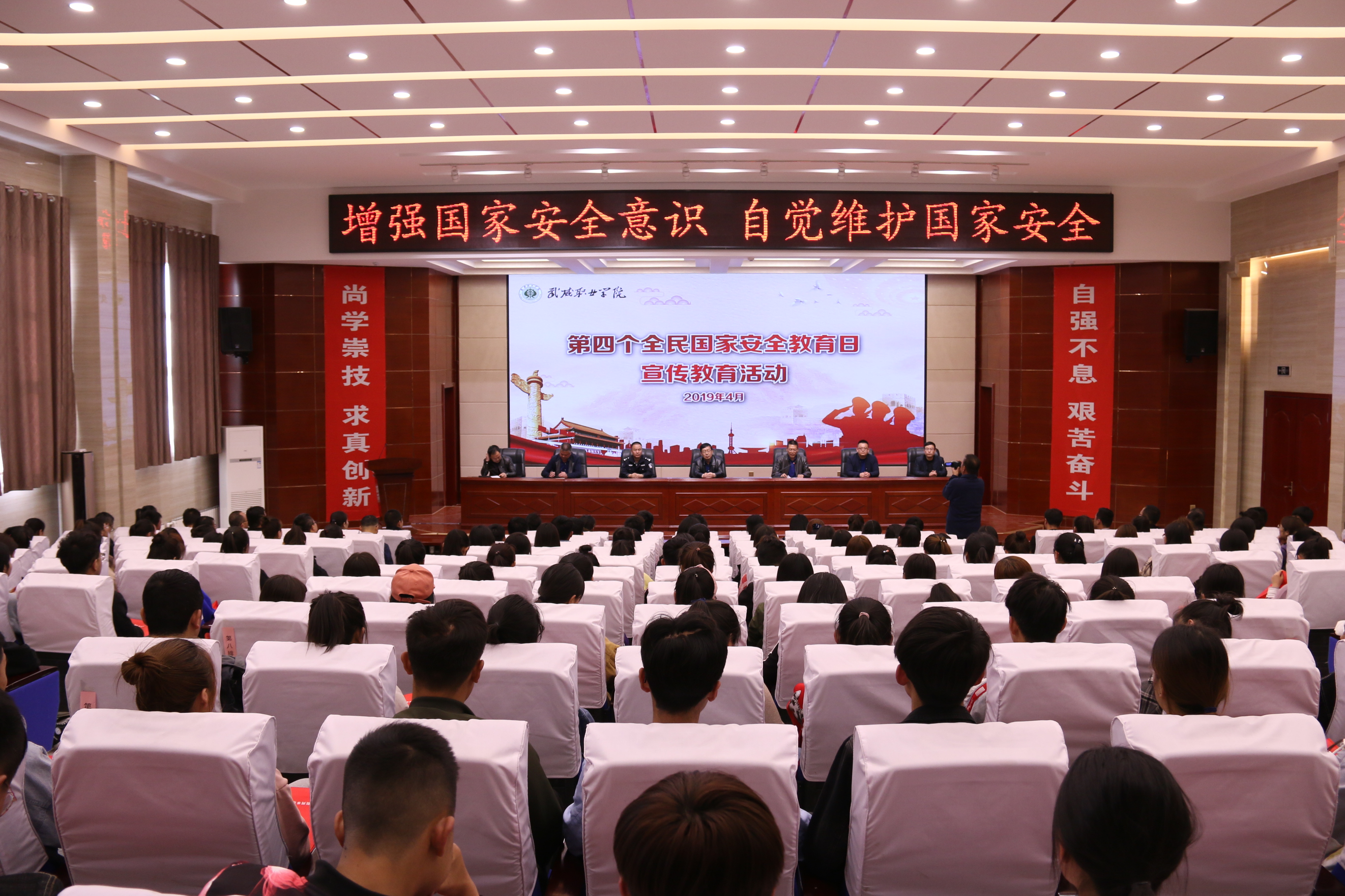 4月15日下午,學(xué)院聯(lián)合武威市國(guó)家安全局、涼州區(qū)公安局西關(guān)街派出所在學(xué)院大學(xué)生活動(dòng)中心組織開(kāi)展了第四個(gè)“全民國(guó)家安全教育日”宣傳活動(dòng),武威市國(guó)家安全局副局長(zhǎng)李宏、學(xué)院副院長(zhǎng)王永緒、涼州區(qū)公安局西關(guān)派出所副所長(zhǎng)杜文義,學(xué)院保衛(wèi)處、宣傳統(tǒng)戰(zhàn)部、學(xué)生工作處、院團(tuán)委等部門(mén)負(fù)責(zé)人及各系師生代表500多人參加宣傳活動(dòng)。