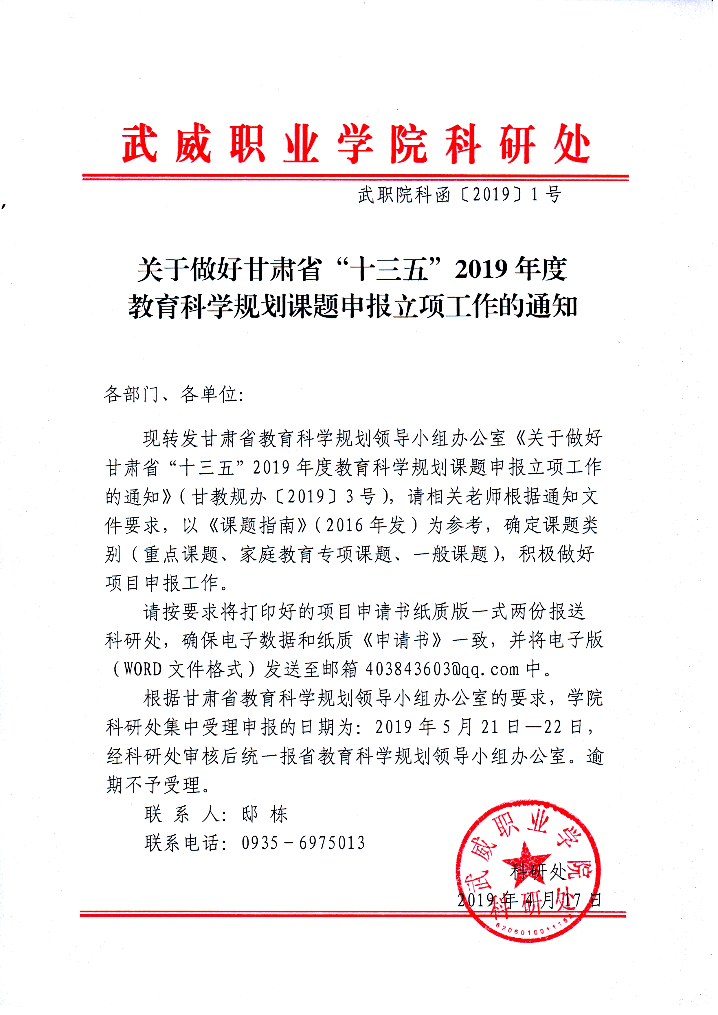 武威職業(yè)學院《關于進一步加強學??蒲姓\信建設…