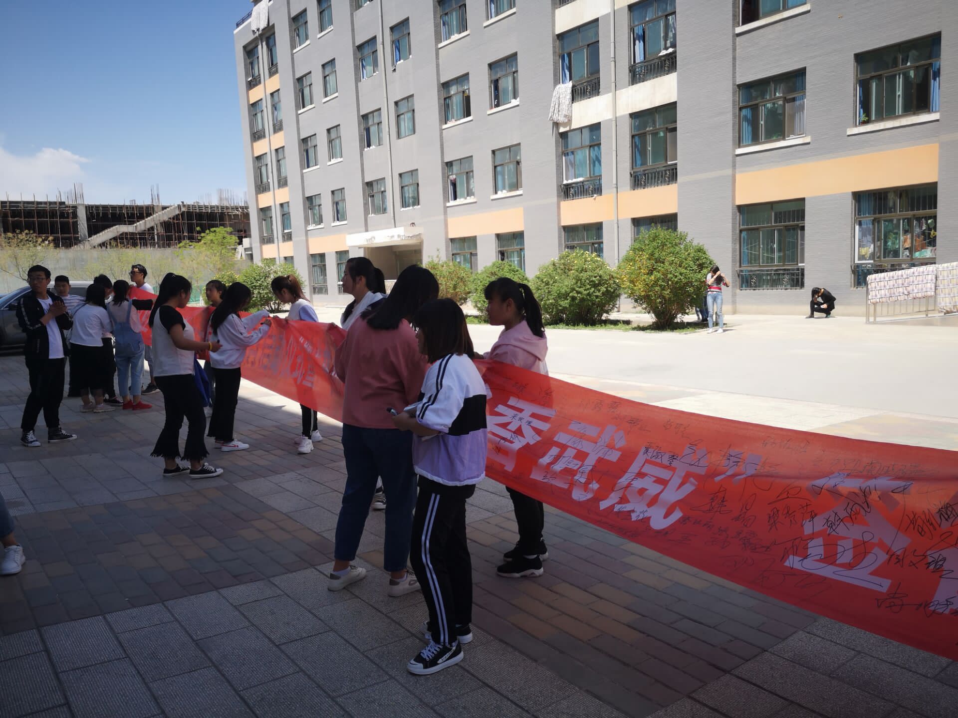 活動(dòng)現(xiàn)場(chǎng)近1000多名來自各院系的同學(xué)們?cè)凇皶遣灰埂阄渫钡拇笮蜋M幅上簽字,號(hào)召同學(xué)們積極參與讀書活動(dòng),“走進(jìn)圖書館,登陸一個(gè)讀書網(wǎng)站,開啟一種閱讀方式