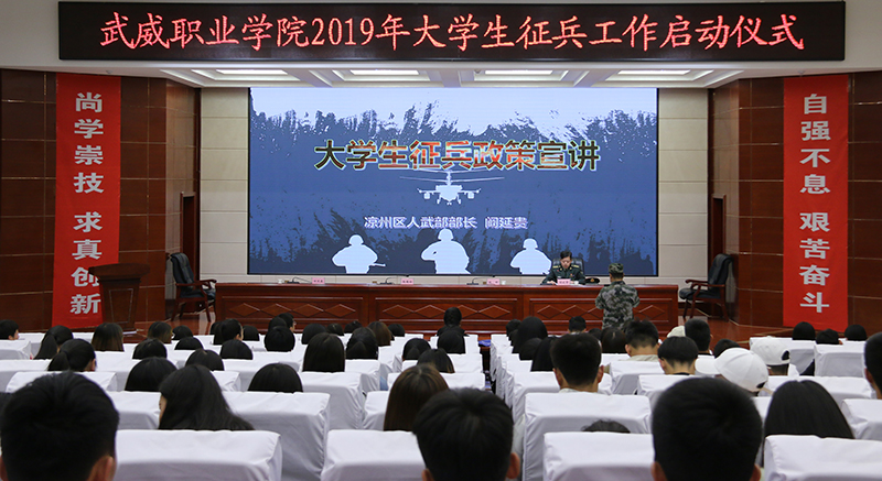 涼州區(qū)人武部部長闞延貴在啟動儀式上宣講了2019年大學生應(yīng)征入伍的優(yōu)惠政策。