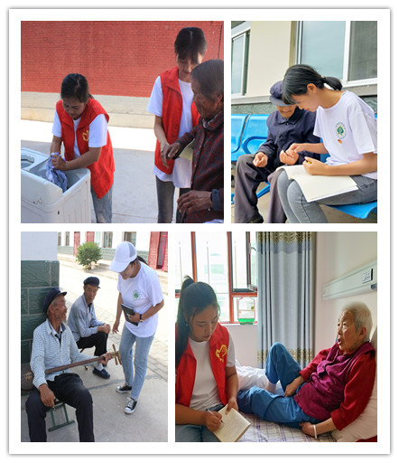 本次活動圍繞養(yǎng)老主題分別調(diào)研了城郊鄉(xiāng)鎮(zhèn)懷安鎮(zhèn)、經(jīng)濟條件較好的武南鎮(zhèn)、地理位置偏遠并且是深度貧困的張義鎮(zhèn)、少數(shù)民族鄉(xiāng)鎮(zhèn)抓喜秀龍鄉(xiāng)、移民搬遷點西靖鎮(zhèn)以及武威目前規(guī)模最大的社會化養(yǎng)老中心幸業(yè)養(yǎng)老中心。實踐團以“開展座談——入戶宣傳調(diào)查——親情陪伴——整理分析養(yǎng)老數(shù)據(jù)”開展了實踐活動。