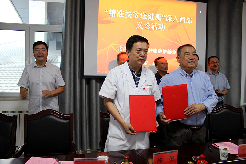 陳鋼與閻桐共同簽訂捐贈10萬元腫瘤防治基金協(xié)議。該基金用于資助武威貧困腫瘤患者康復(fù)治療使用。
