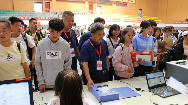 學(xué)院安排專車前往武威火車站、汽車站,為新生及家長提供全天候接站服務(wù),并為送行家長專設(shè)了休息區(qū)。安保人員指揮車輛有序停放,保障安全有序的校園環(huán)境。工作人員引導(dǎo)新生辦理入校手續(xù),報到、繳費、入班、物品發(fā)放等各個環(huán)節(jié)有條不紊、高效暢通。體育館的電子屏上不斷播放學(xué)院宣傳片、大型公益短片,增強了新生及家長對學(xué)院的了解、認可和熱愛。為幫助家庭經(jīng)濟困難學(xué)生順利入學(xué),學(xué)院還設(shè)立了“綠色通道”服務(wù)點,為家庭經(jīng)濟困難學(xué)生辦理緩交(減免)學(xué)費和生源地信用助學(xué)貸款登記手續(xù)。