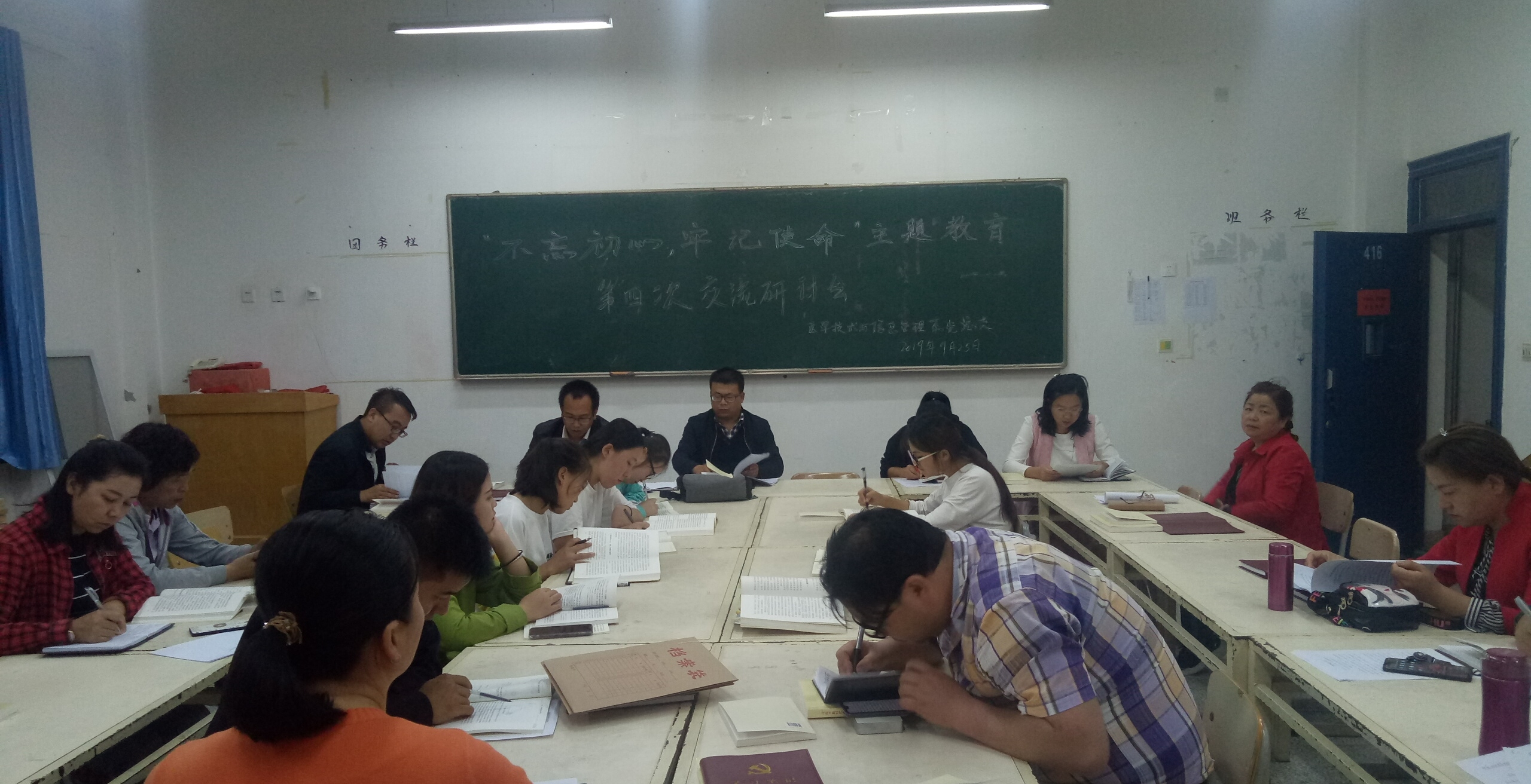9月25日晚,醫(yī)學(xué)技術(shù)學(xué)院黨總支在明遠(yuǎn)樓416會(huì)議室召開(kāi)“不忘初心、牢記使命”主題教育讀書班第四次交流研討會(huì)暨讀書班結(jié)業(yè)儀式。系全體黨員、非黨員教師及入黨積極分子參加了會(huì)議。系副主任蔡濟(jì)眾主持會(huì)議并做總結(jié)講話。