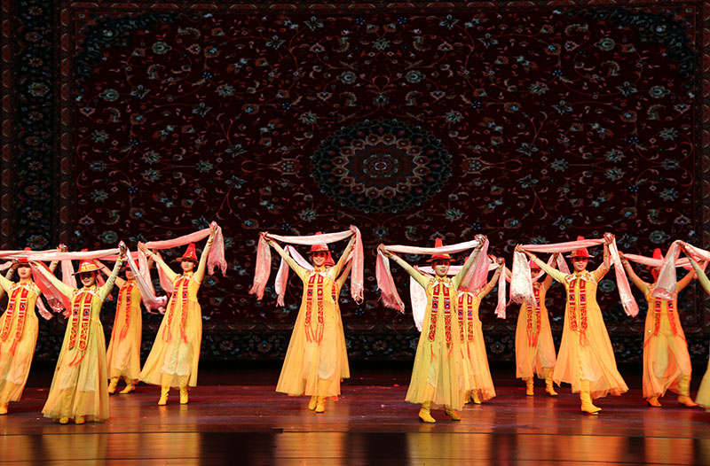 大型歌舞劇《裕固風華》是河西學院師生歷經三年精心打造的首部原創(chuàng)教學劇目,是教育部、文化和旅游部、財政部高雅藝術進校園活動省級巡演劇目,是省委宣傳部和省文旅廳“春綠隴原”展演劇目,是甘肅省學校美育改革與發(fā)展重大項目、甘肅省高校美育教育舞臺示范精品。全劇由《序》《東遷》《家園》《傳說》《婚禮》五個篇章組成,以裕固族傳統(tǒng)民歌、舞蹈、民俗為載體進行創(chuàng)作和改編,以情景歌舞的形式表現(xiàn)裕固族的歷史變遷和民俗文化,以講述、吟誦、歌舞的手法,再現(xiàn)了裕固族的發(fā)展歷史和多姿多彩的獨特文化,以高品位的藝術水準弘揚、展現(xiàn)了中華民族傳統(tǒng)文化的優(yōu)良基因和時代活力。