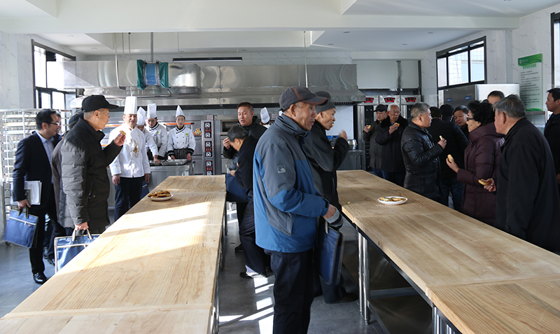 會議結束后,院領導與老同志們參觀了學院經(jīng)濟管理系烹飪實訓中心,詳細了解了學院實訓室的建設發(fā)展情況,并與在場實習的學生親切交談,并在現(xiàn)場品嘗了學生親手制作的中西面點,離退休黨員們盛贊了烹飪教師的專業(yè)水平和同學們的動手實踐能力。他們一致表示,要永葆革命初心,堅定理想信念,深入學習貫徹習近平新時代中國特色社會主義思想,牢記共產(chǎn)黨員的責任與使命,關注學院發(fā)展并做好“關心下一代”工作,為學院的建設和發(fā)展獻言獻策。