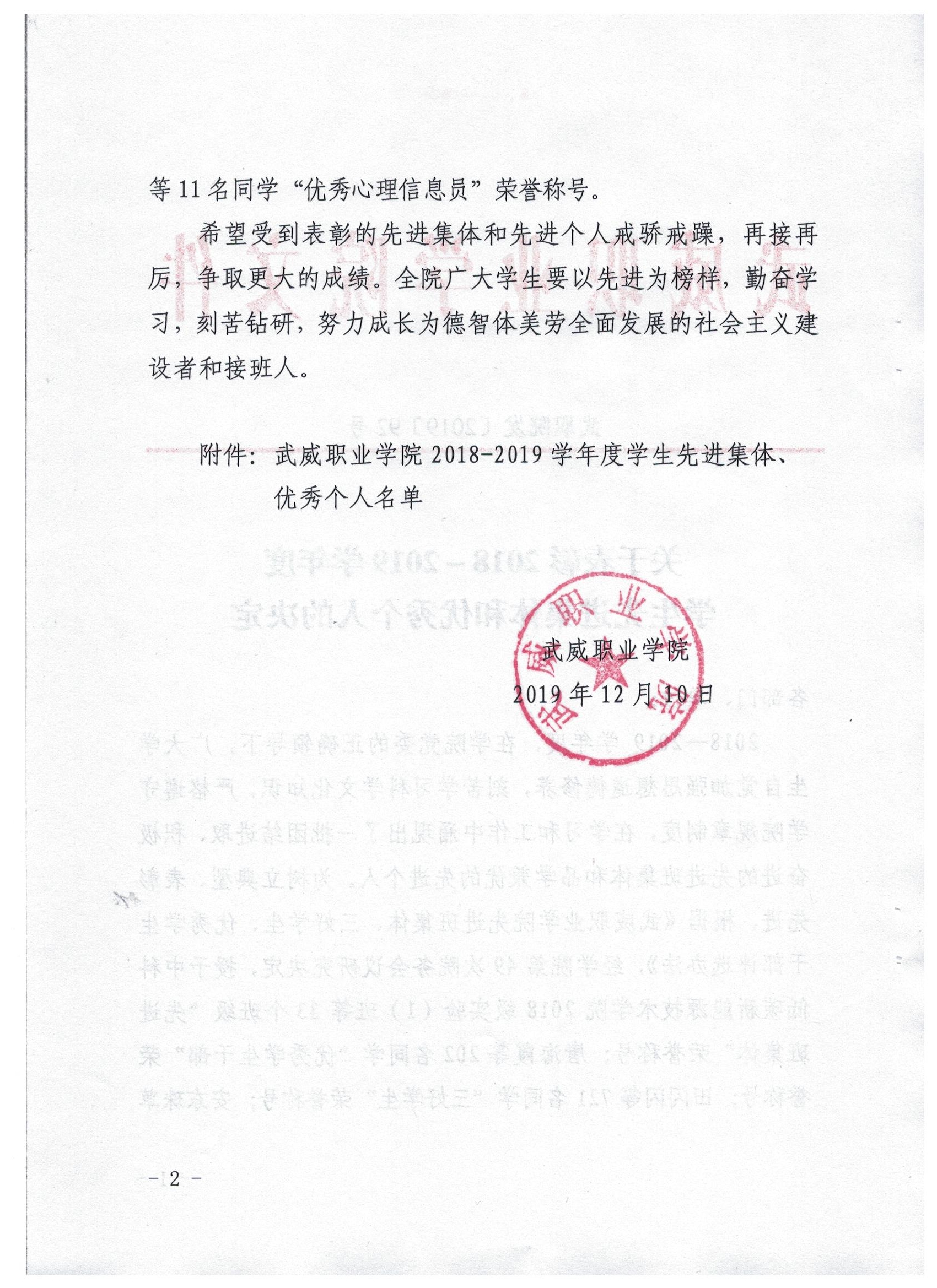 關(guān)于表彰2018-2019學(xué)年度學(xué)生工作先進(jìn)個人的決定