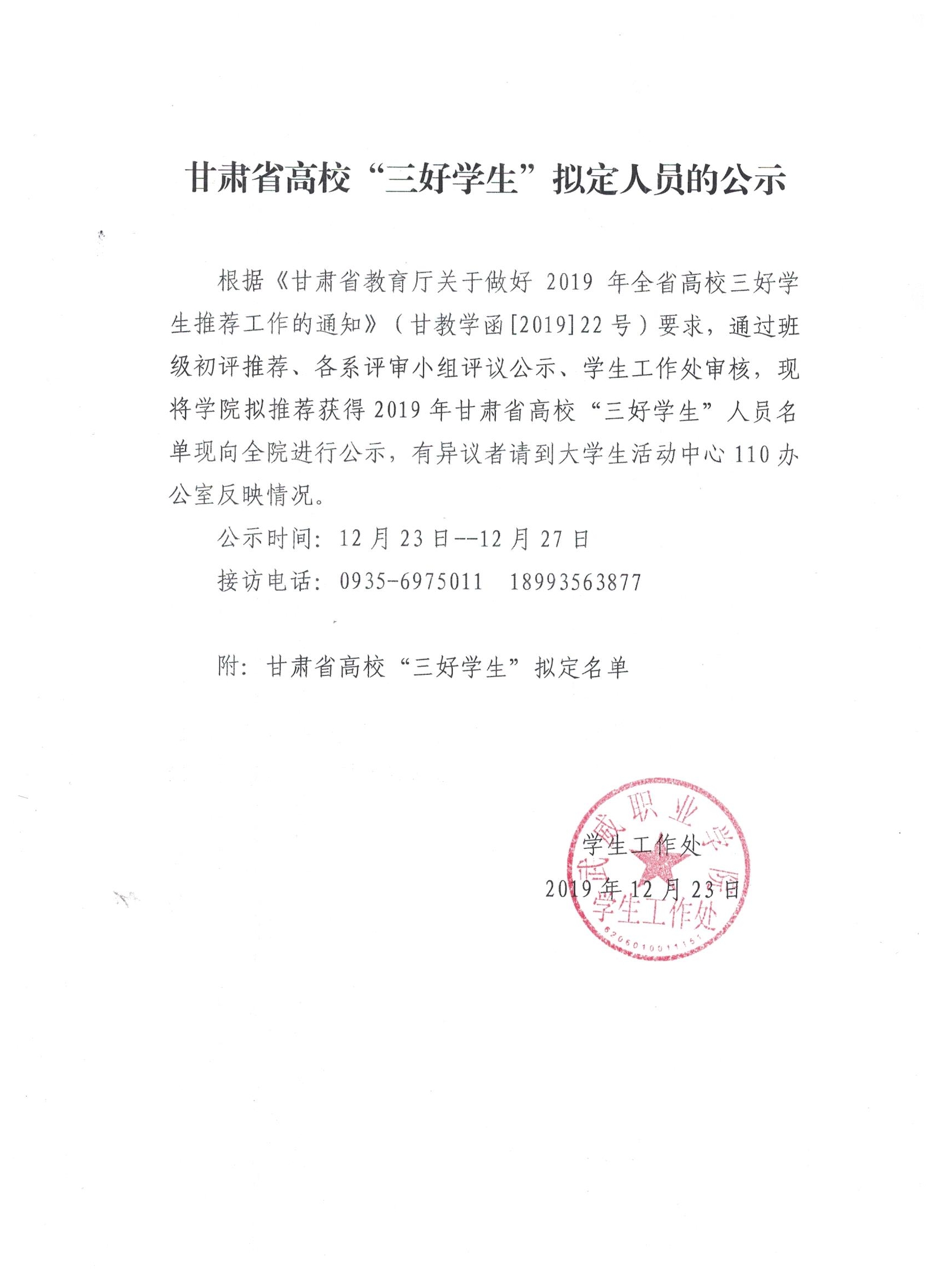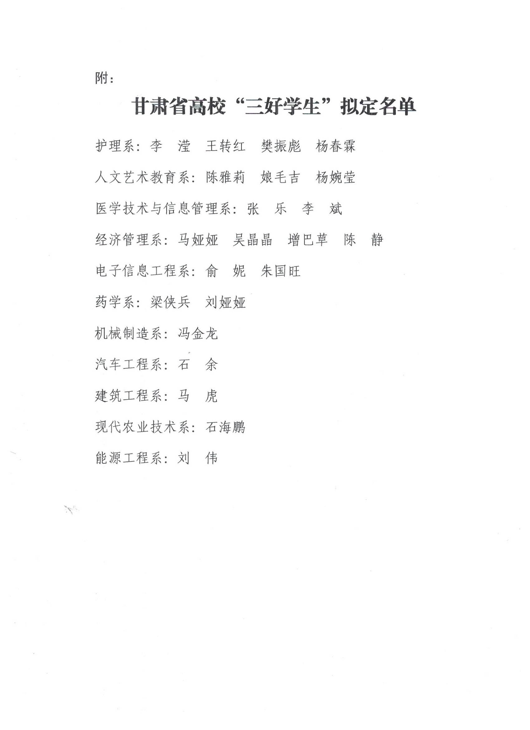 甘肅省高校“三好學(xué)生”擬定人員的公示