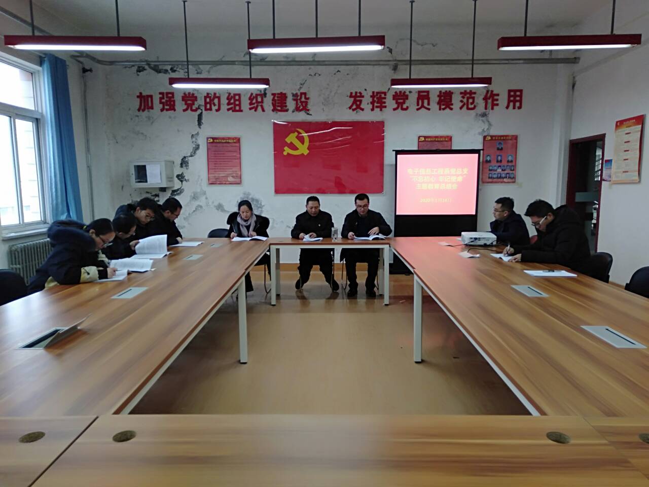 根據(jù)中共武威職業(yè)學(xué)院委員會“不忘初心、牢記使命”主題教育領(lǐng)導(dǎo)小組辦公室《關(guān)于認真做好“不忘初心、牢記使命”主題教育總結(jié)工作的通知》要求,電子信息工程系黨總支于2020年1月14日下午召開了“不忘初心、牢記使命”主題教育總結(jié)會議。全體黨員參加了會議,會議由黨總支書記袁青年主持。