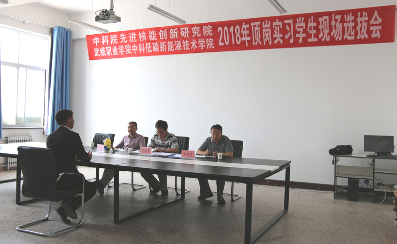 ? ? ? ?2018年6月21日,中國科學院先進核能創(chuàng)新研究院在學院舉行了2018年頂崗實習學生現(xiàn)場選撥會,由中科院先進核能創(chuàng)新研究院綜合管理部常務(wù)副主任王納秀、熔鹽機械部熱工組組長王曉和中科武威新能源研究所所長朱智勇組成的專家組對能源類專業(yè)和機械類專業(yè)學生進行了現(xiàn)場面試,遴選出的14名同學將于7月份前往中國科學院先進核能創(chuàng)新研究院進行為期一年的專業(yè)頂崗實習,他們將在中科院先進核能創(chuàng)新研究院專家教授的帶領(lǐng)下,通過一對一指導和崗位輪訓等形式全面系統(tǒng)完成頂崗實習,了解行業(yè)技術(shù)需求和技術(shù)最新進展,掌握更多的專業(yè)知識和實踐技能,感受頂級科研院所深厚的科技氛圍和文化氛圍,全面提升專業(yè)水平和綜合素養(yǎng),為成功走向社會奠定良好的基礎(chǔ)。