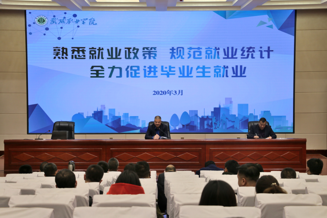 為進(jìn)一步促進(jìn)學(xué)院畢業(yè)生就業(yè)工作,加強(qiáng)就業(yè)工作服務(wù)水平,做好就業(yè)統(tǒng)計(jì)工作。根據(jù)院黨委安排部署,3月31日在大學(xué)生活動(dòng)中心菁英廳召開了2020屆畢業(yè)生就業(yè)工作促進(jìn)會(huì)。黨委委員、副院長(zhǎng)王守云,各系黨總支書記、主任、副主任、就業(yè)干事、輔導(dǎo)員、2017級(jí)全體班主任及招就處、雙創(chuàng)中心工作人員共110人參加會(huì)議,招生就業(yè)處處長(zhǎng)蔡柱山主持會(huì)議。