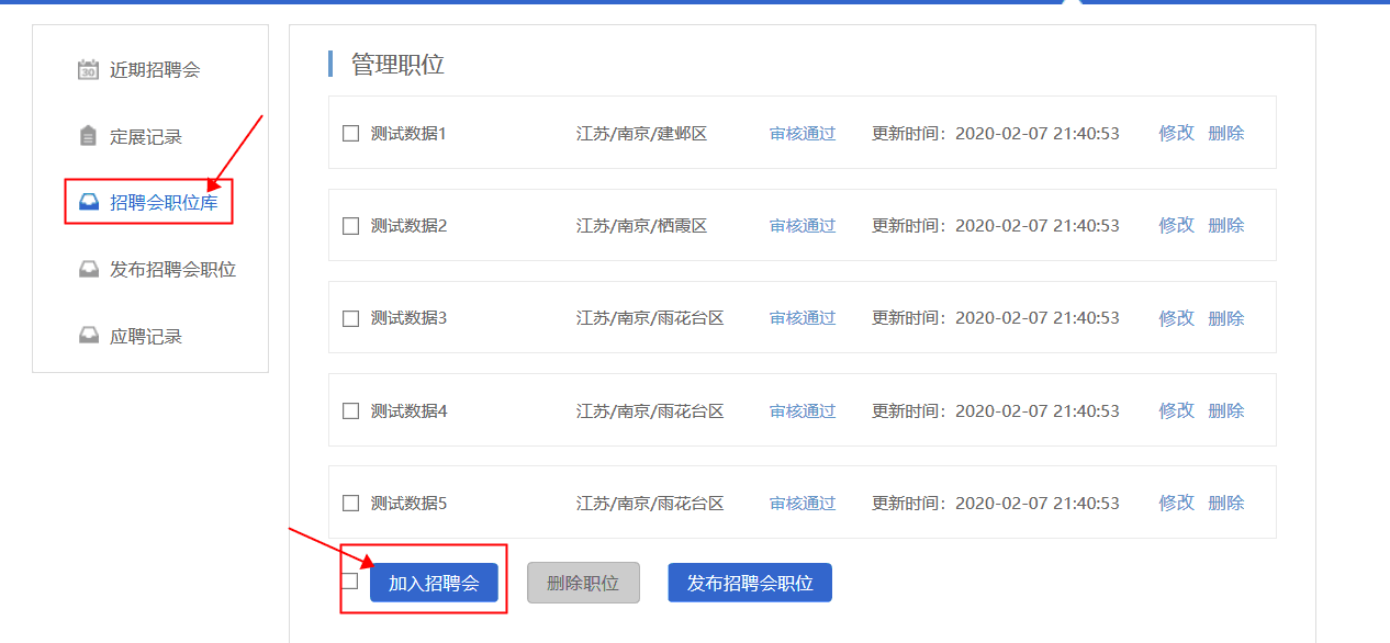 2.在企業(yè)會員中心——網絡招聘會——定展記錄頁面,選擇需要發(fā)布職位的招聘會,點擊發(fā)布職位按鈕,選擇參會職位點擊發(fā)布參展職位按鈕,職位將在網絡招聘大廳中進行展示。