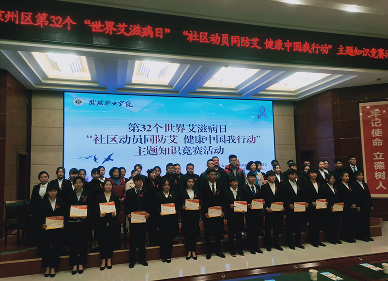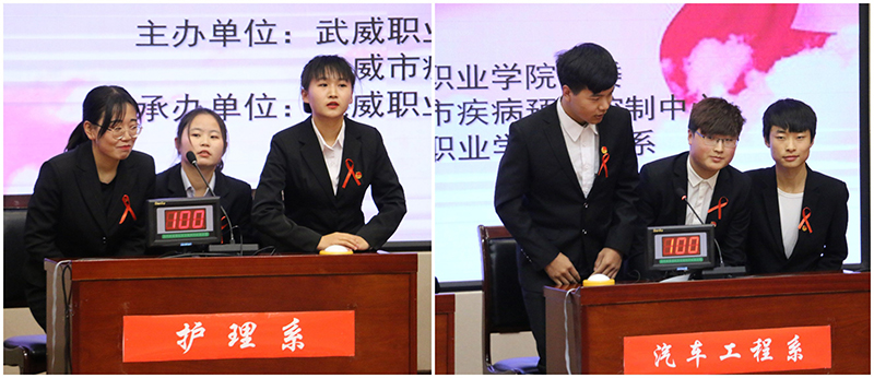 為持續(xù)深入推進(jìn)大學(xué)生艾滋病預(yù)防教育工作,迎接第32個世界艾滋病日的到來, 12月1日晚,學(xué)院開展了艾滋病知識競賽活動,學(xué)院副院長王永緒、王守云,市疾控中心領(lǐng)導(dǎo)參加活動。此次活動由武威職業(yè)學(xué)院與武威市疾控中心聯(lián)合主辦,護(hù)理系承辦,活動的主題為“社區(qū)動員同防艾 .健康中國我行動”。學(xué)院團(tuán)委及部分系老師,各系學(xué)生代表觀看了比賽。