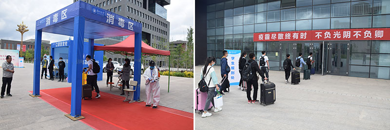 學(xué)院在校門(mén)口設(shè)置了測(cè)溫通道,消毒區(qū)、口罩發(fā)放區(qū)、臨時(shí)觀察區(qū)等,為同學(xué)們的健康安全保駕護(hù)航。學(xué)生到校后,依次通過(guò)測(cè)溫區(qū)、消毒區(qū),經(jīng)工作人員嚴(yán)格的測(cè)溫和消毒后,更換口罩到指定地點(diǎn)報(bào)到。