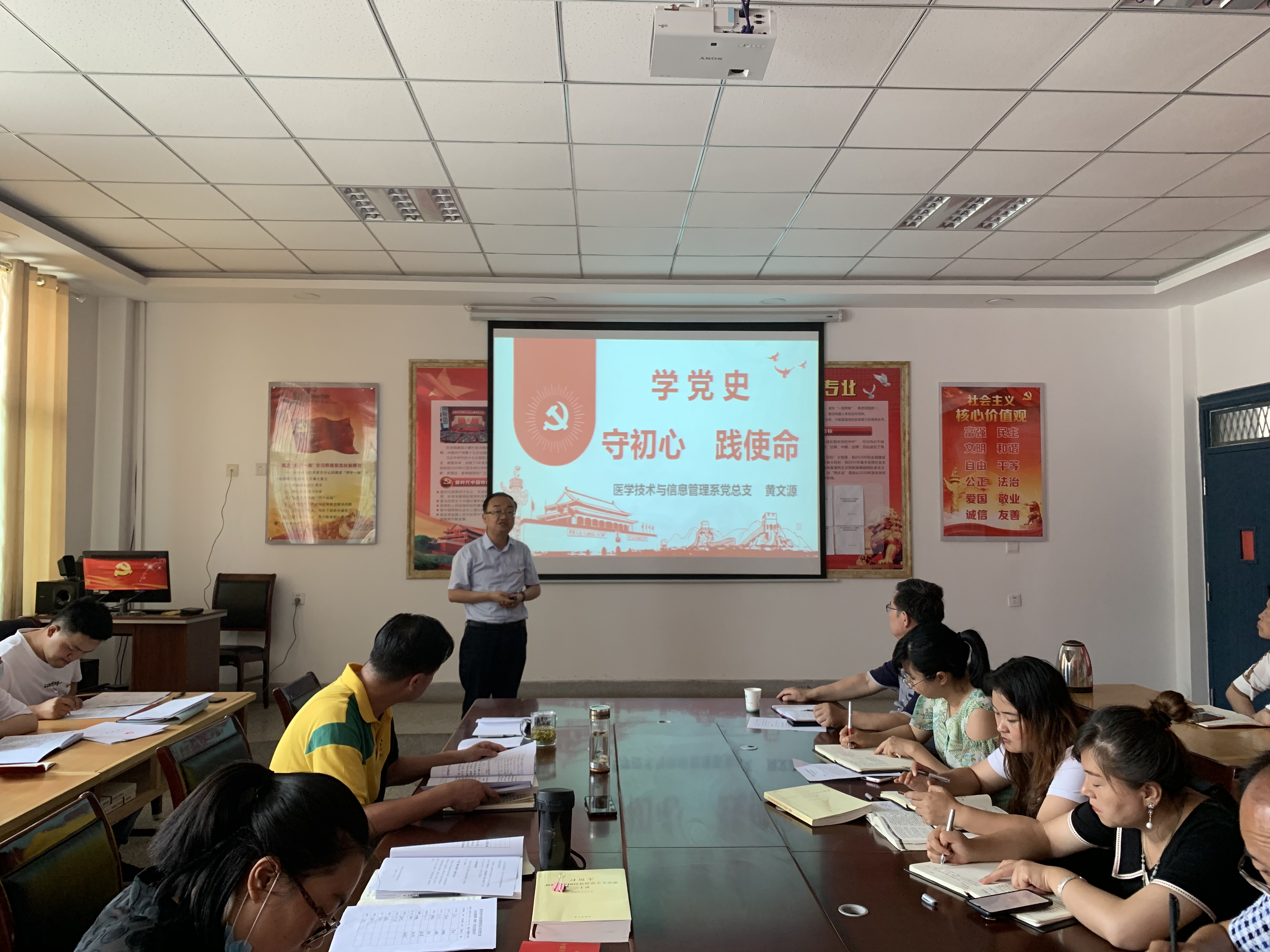 為繼承和弘揚(yáng)黨的優(yōu)良傳統(tǒng),進(jìn)一步提高黨組織的凝聚力和戰(zhàn)斗力,增強(qiáng)黨員的責(zé)任感和使命感,7月8日下午,醫(yī)學(xué)技術(shù)學(xué)院黨總支書(shū)記黃文源為系全體黨員上了一堂題為《學(xué)黨史、守初心、踐使命》的專題黨課。