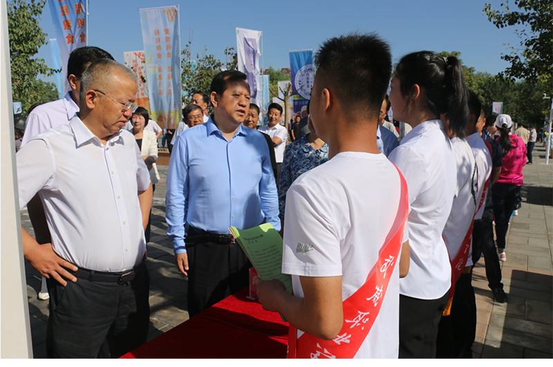 活動現(xiàn)場,學院制作展示了愛糧節(jié)糧主題展板,組織志愿者向市民發(fā)放倡議書1000余份。市委書記柳鵬一行來到學院展區(qū)參觀指導(dǎo)工作,柳鵬詳細詢問了學生食堂日常浪費情況和學院文明就餐教育工作,并對學院教育引導(dǎo)工作予以肯定,勉勵同學們要帶頭發(fā)揚優(yōu)良傳統(tǒng),珍惜每一粒糧食,杜絕浪費,當好勤儉節(jié)約的排頭兵。