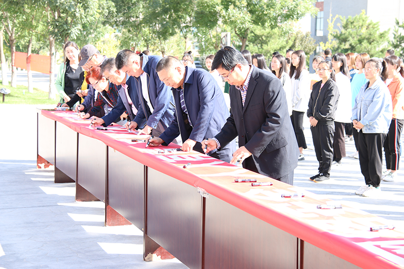 參會領導及師生就“網(wǎng)絡安全,人人有責,文明上網(wǎng),從我做起”進行集體簽名。